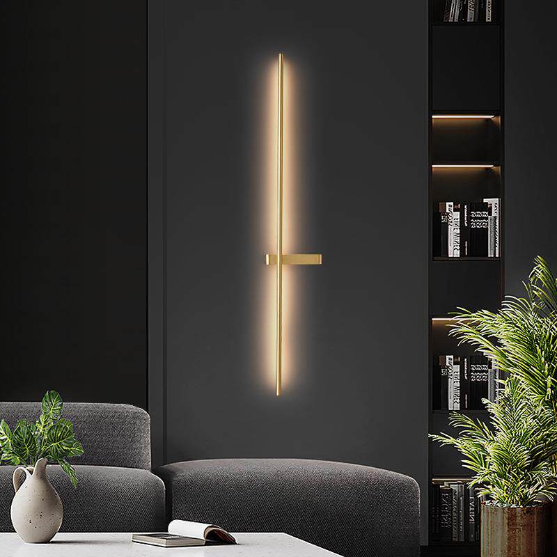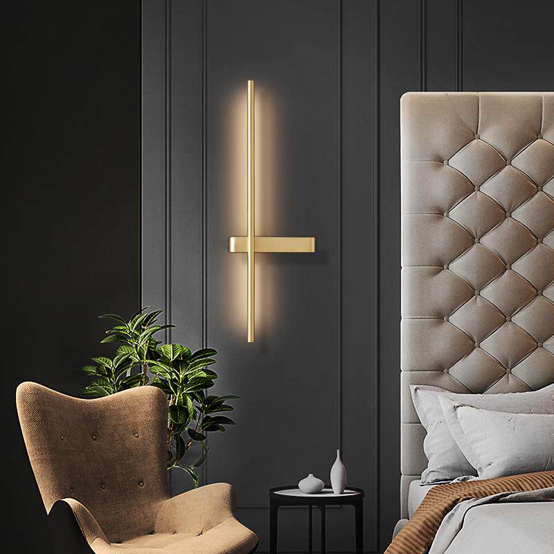 全铜客厅高级壁灯长条极简主卧室床头灯2022新款设计感格栅墙壁灯