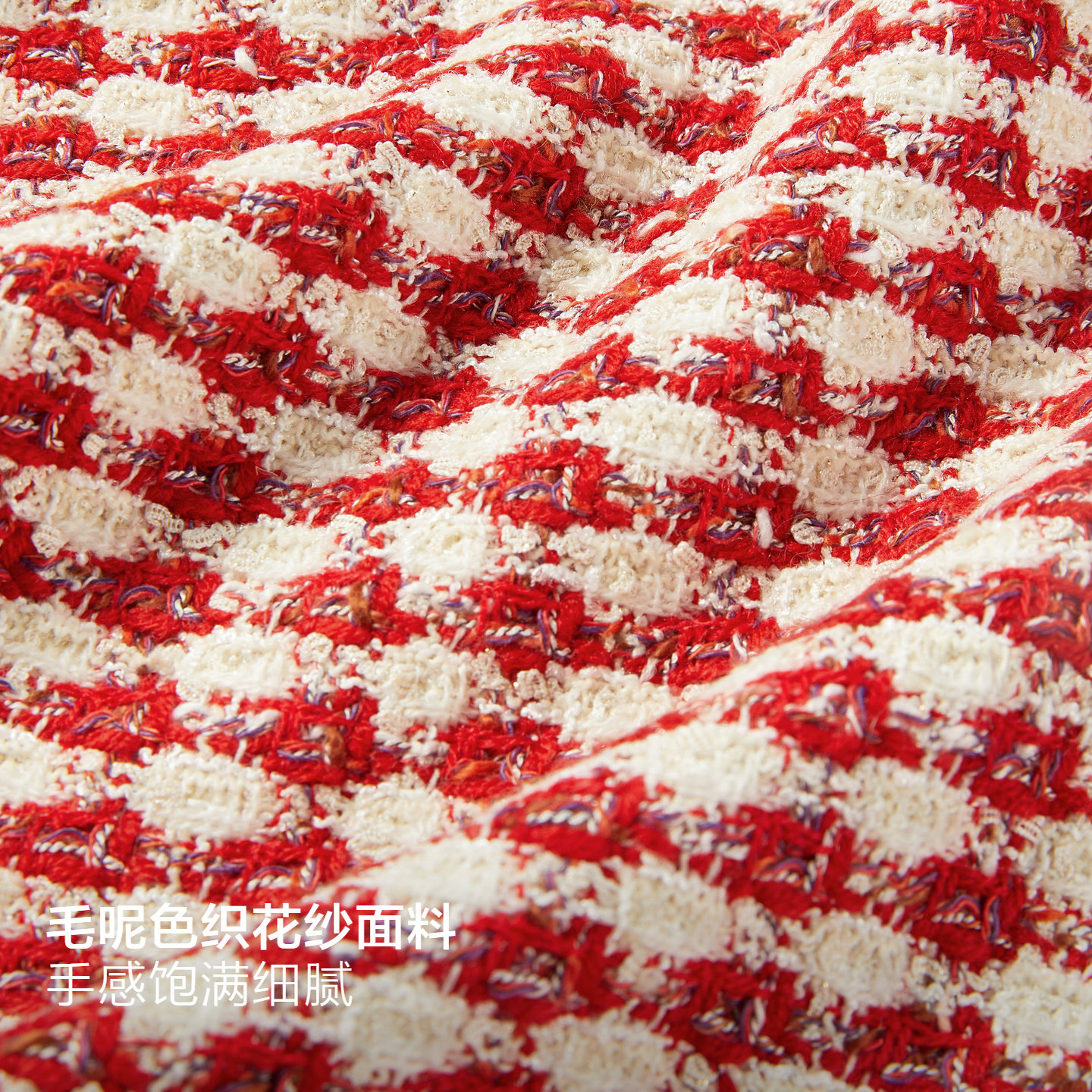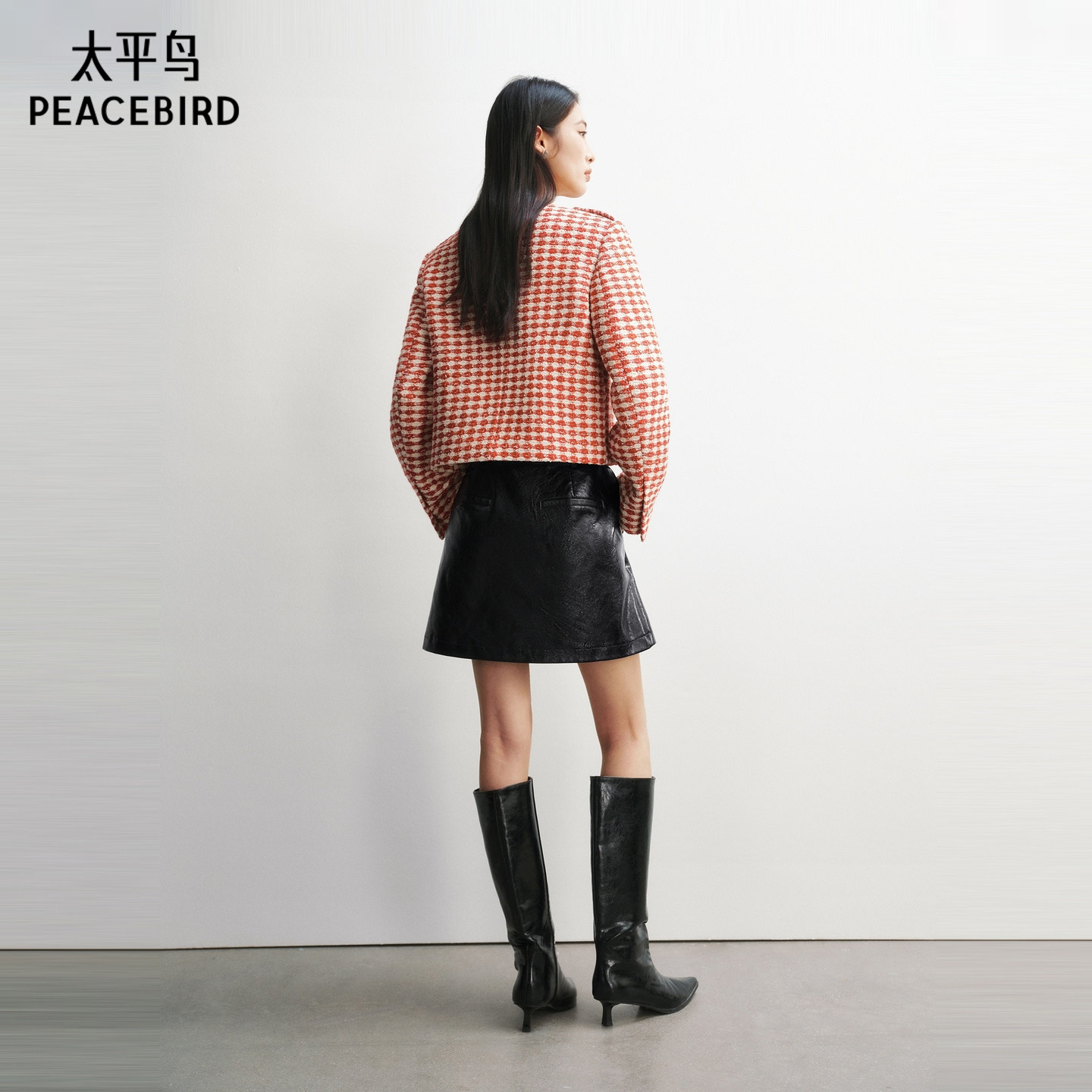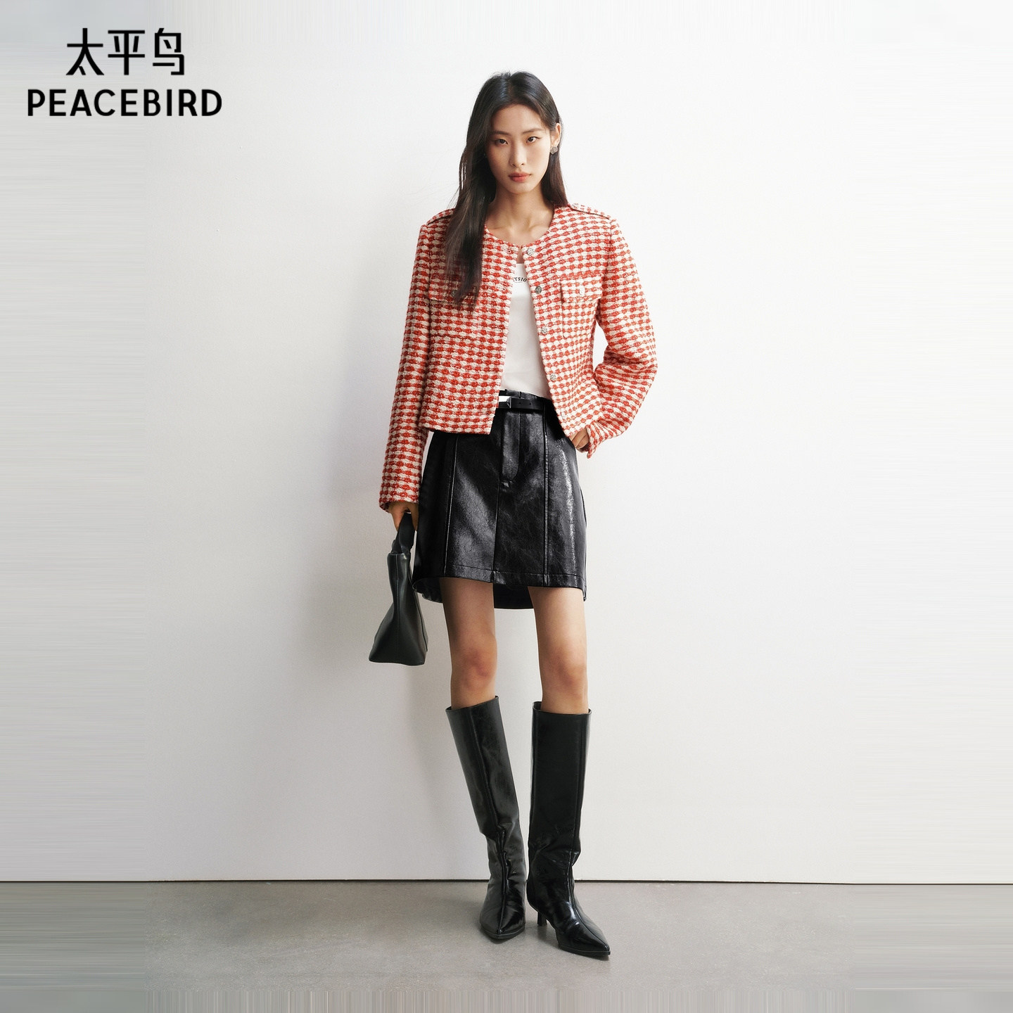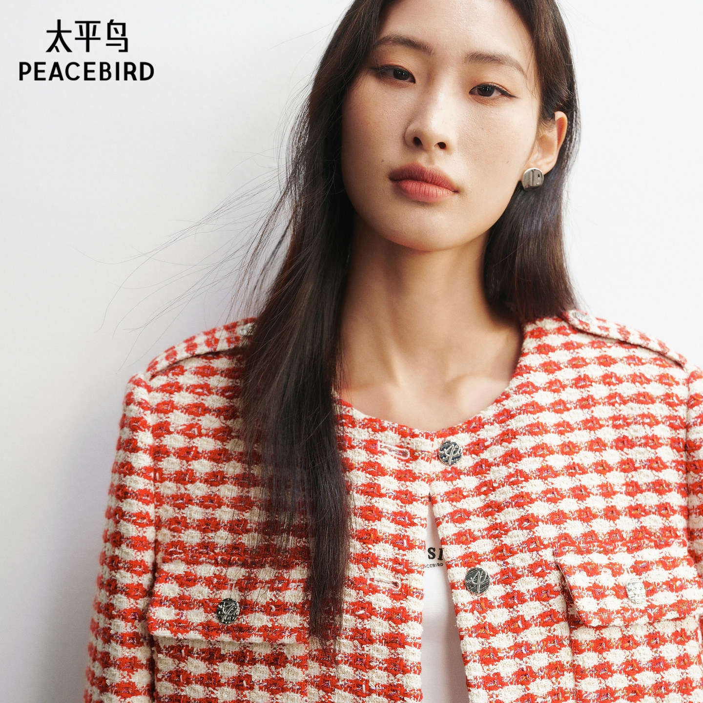 【商场同款】太平鸟樱桃红截短圆领花纱小香风外套女A1BBG1226