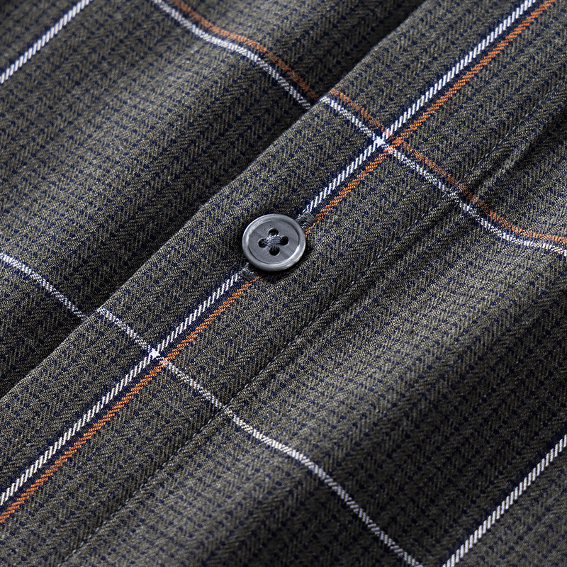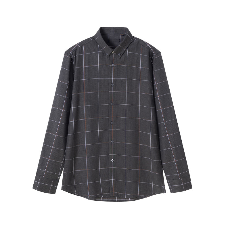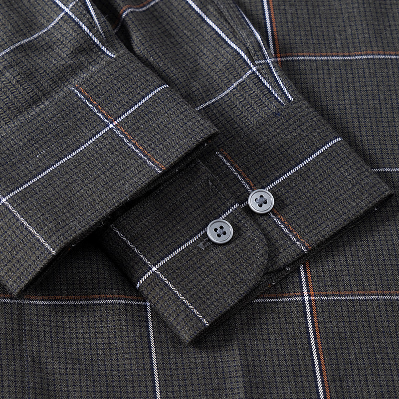 啄木鸟秋季新款男士长袖100%全纯棉磨毛格子衬衫 高级感休闲衬衣