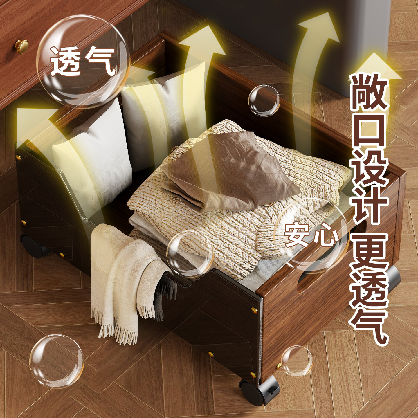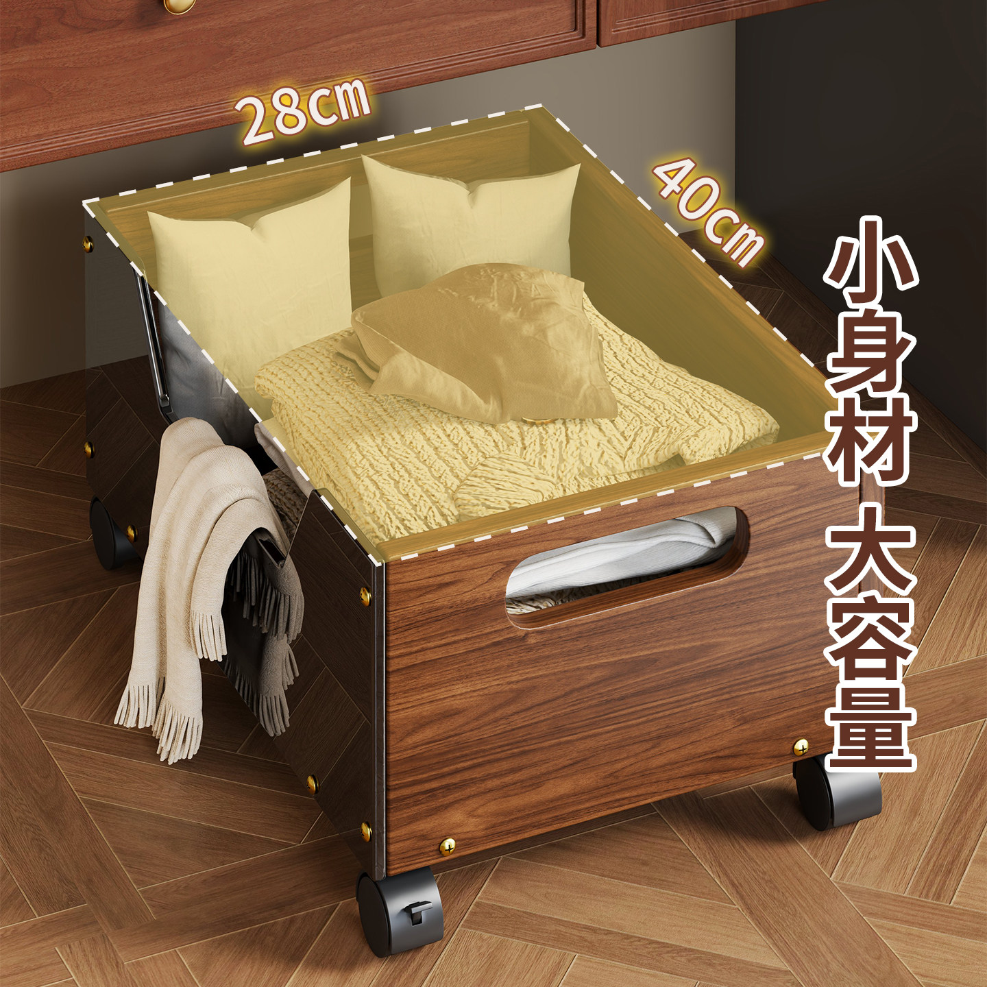 浴室柜下脏衣篓脏衣服收纳筐复古高颜值带轮储物筐洗漱台下方推车