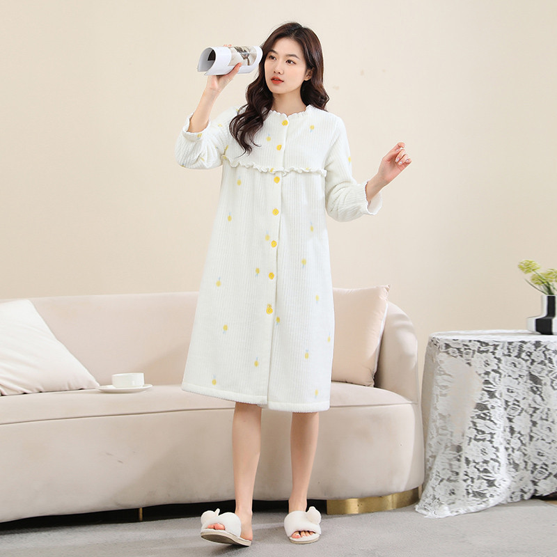 法兰绒睡袍女秋冬季2025年新款珊瑚绒睡衣中长款加绒保暖家居服厚