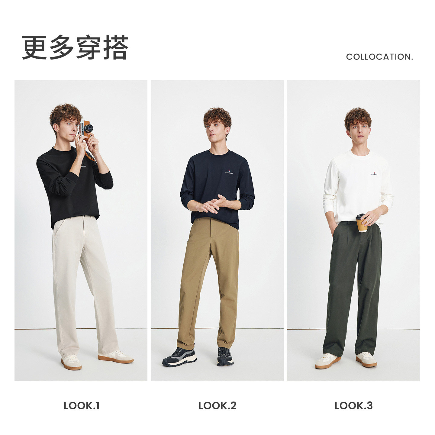 班尼路双面绒长袖t恤男2025新款秋冬季白色打底衫潮流字母上衣服A