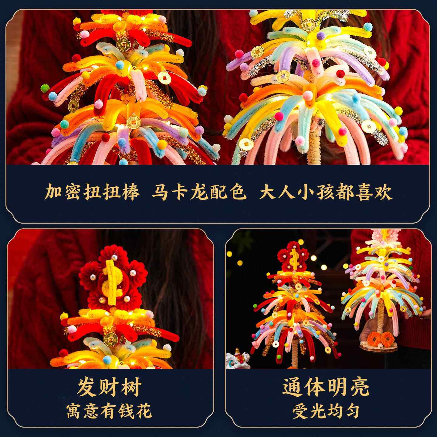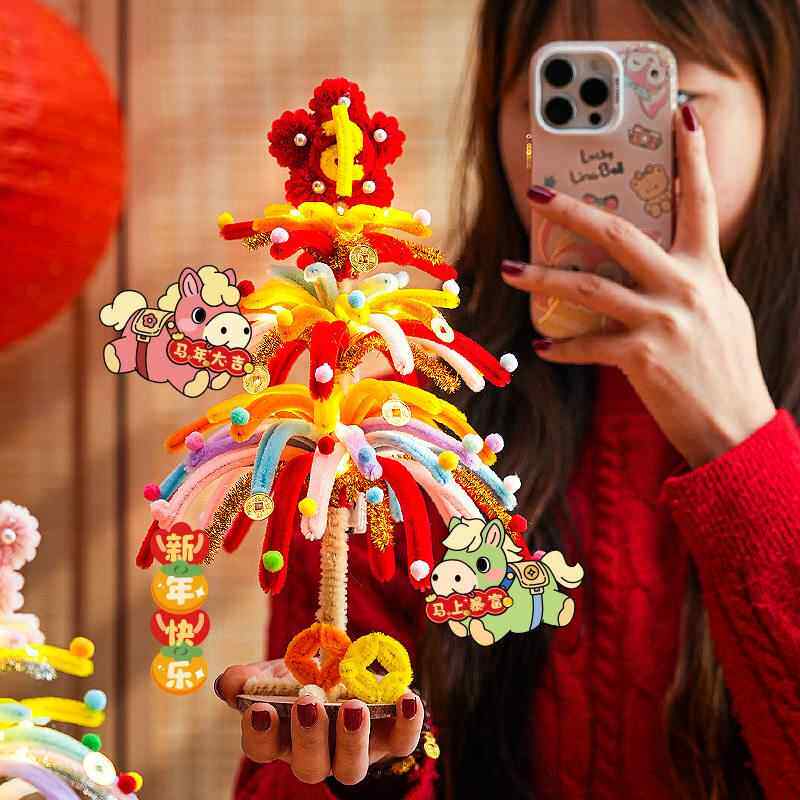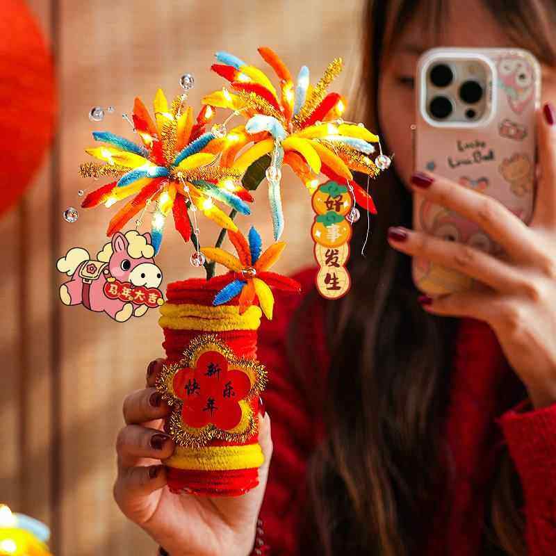 2026新年马年扭扭棒烟花发财树手工制作材料包桌面摆件春节庆用品幼儿园亲子互动手工DIY玩具儿童新年礼物