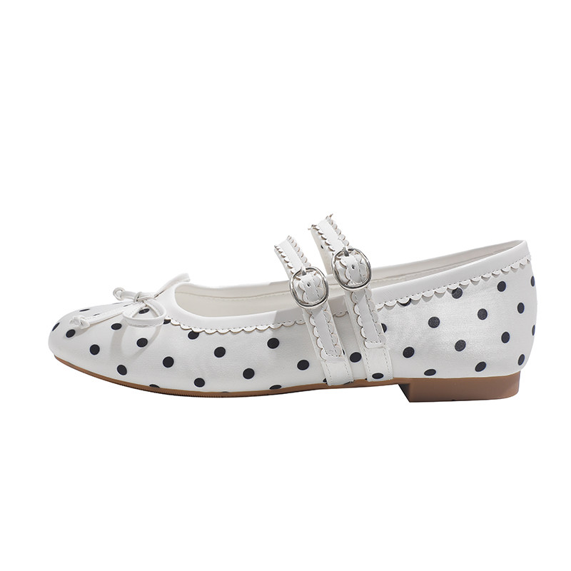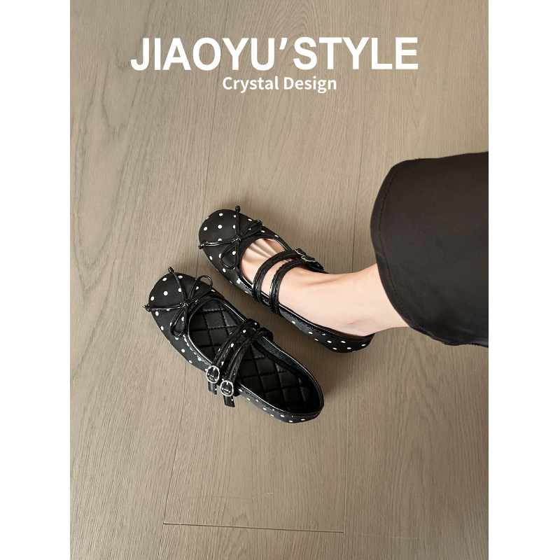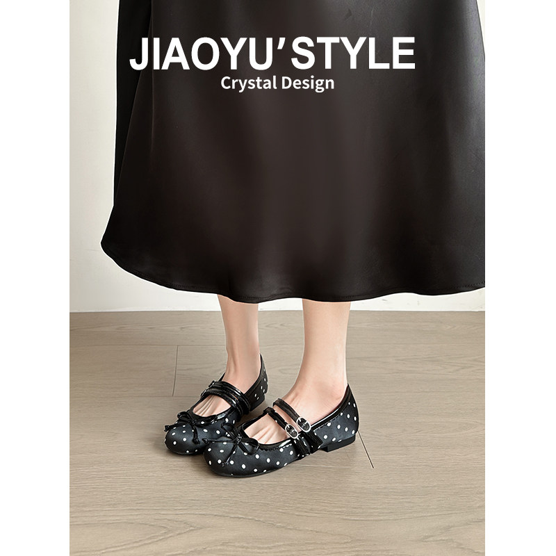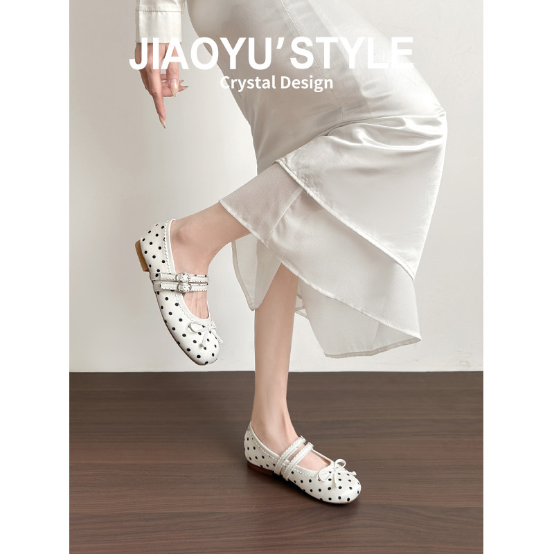 真皮~骄屿法式波点芭蕾玛丽珍鞋女2026新款一字带蝴蝶结浅口单鞋