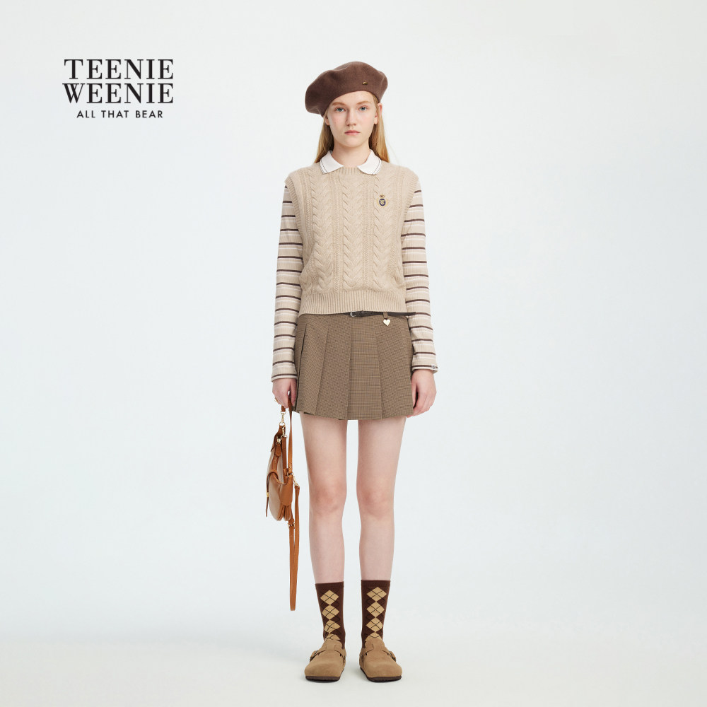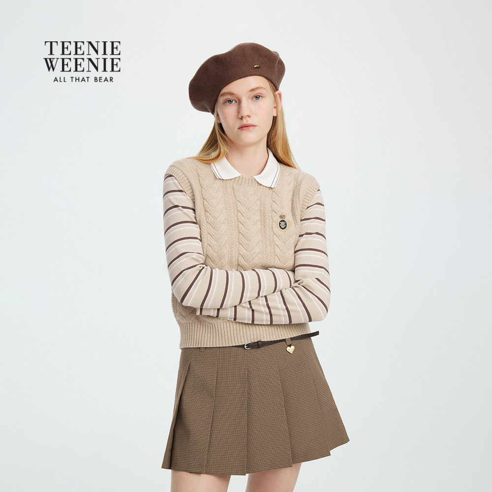 【含绵羊毛】TeenieWeenie小熊女装毛衣秋冬季高智感绞花针织背心