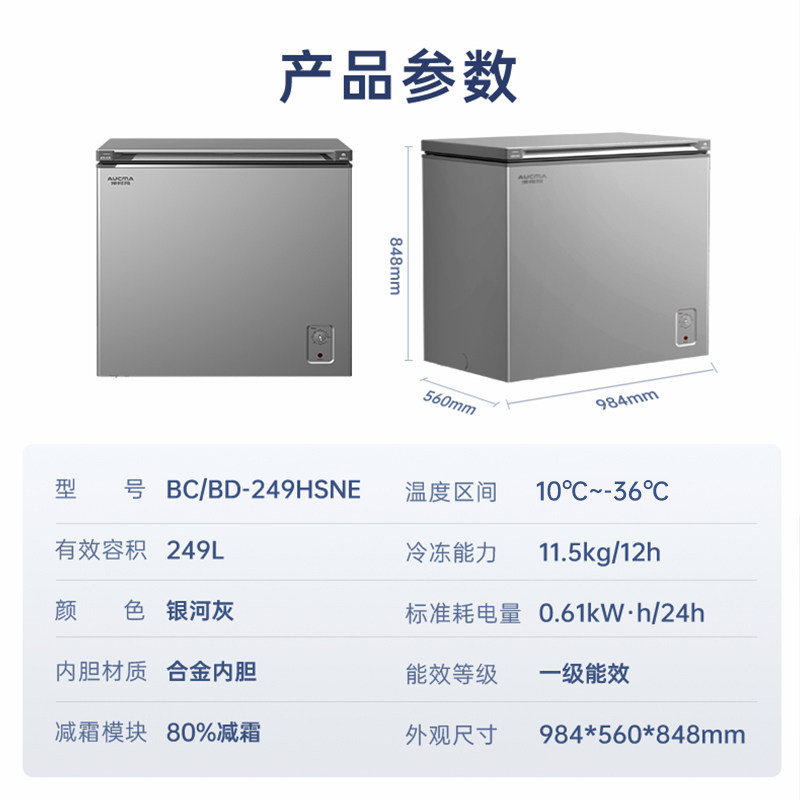 [国补15%]澳柯玛BC/BD-249HSNE家用卧式冷柜变温减霜1级冰柜344