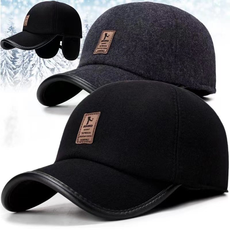 秋冬帽子男士中老年人毛呢帽冬季户外护耳棒球帽鸭舌帽保暖爸爸帽
