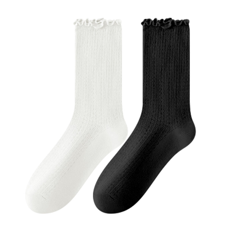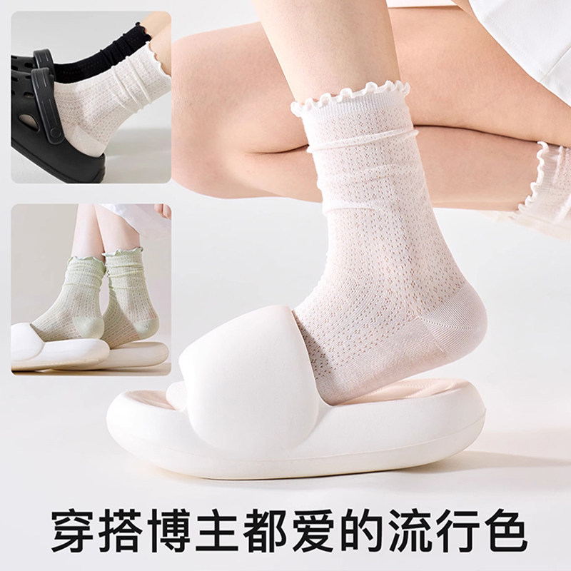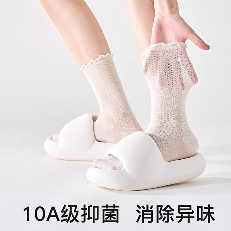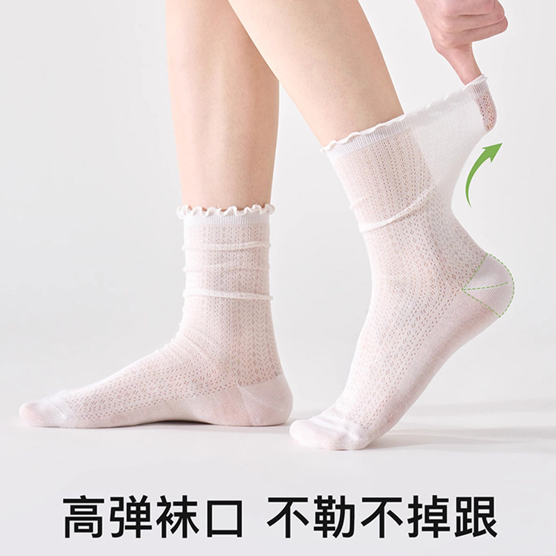 堆堆袜子女士夏季薄款新疆棉凉感网眼透气中筒棉袜白色夏天长袜