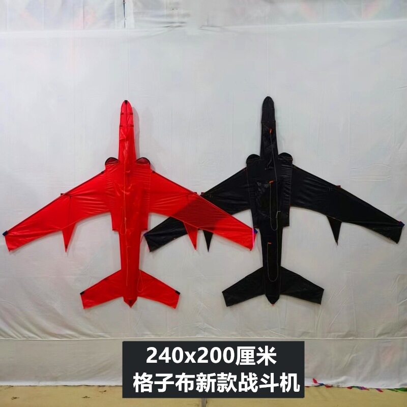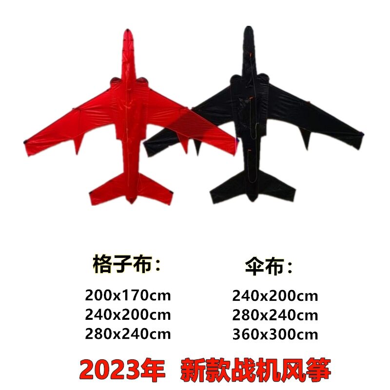 2023年新款战斗机风筝儿童成人格子布 伞布红色 黑色大型飞机风筝