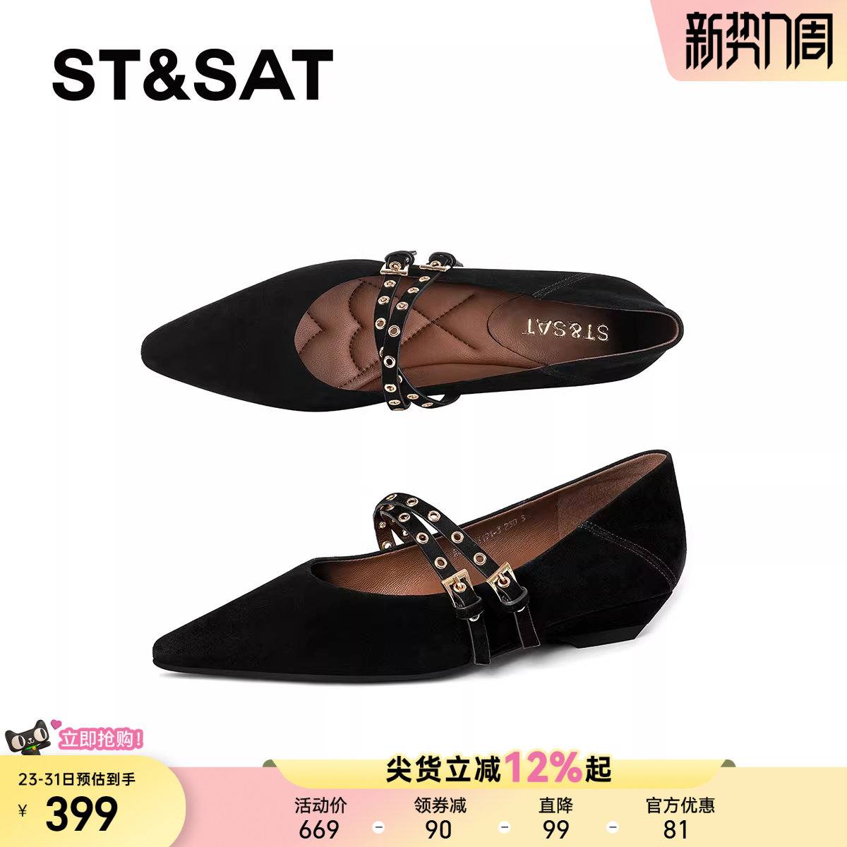 星期六法式玛丽珍鞋女2025新款尖头浅口英伦复古单鞋平底真皮女鞋