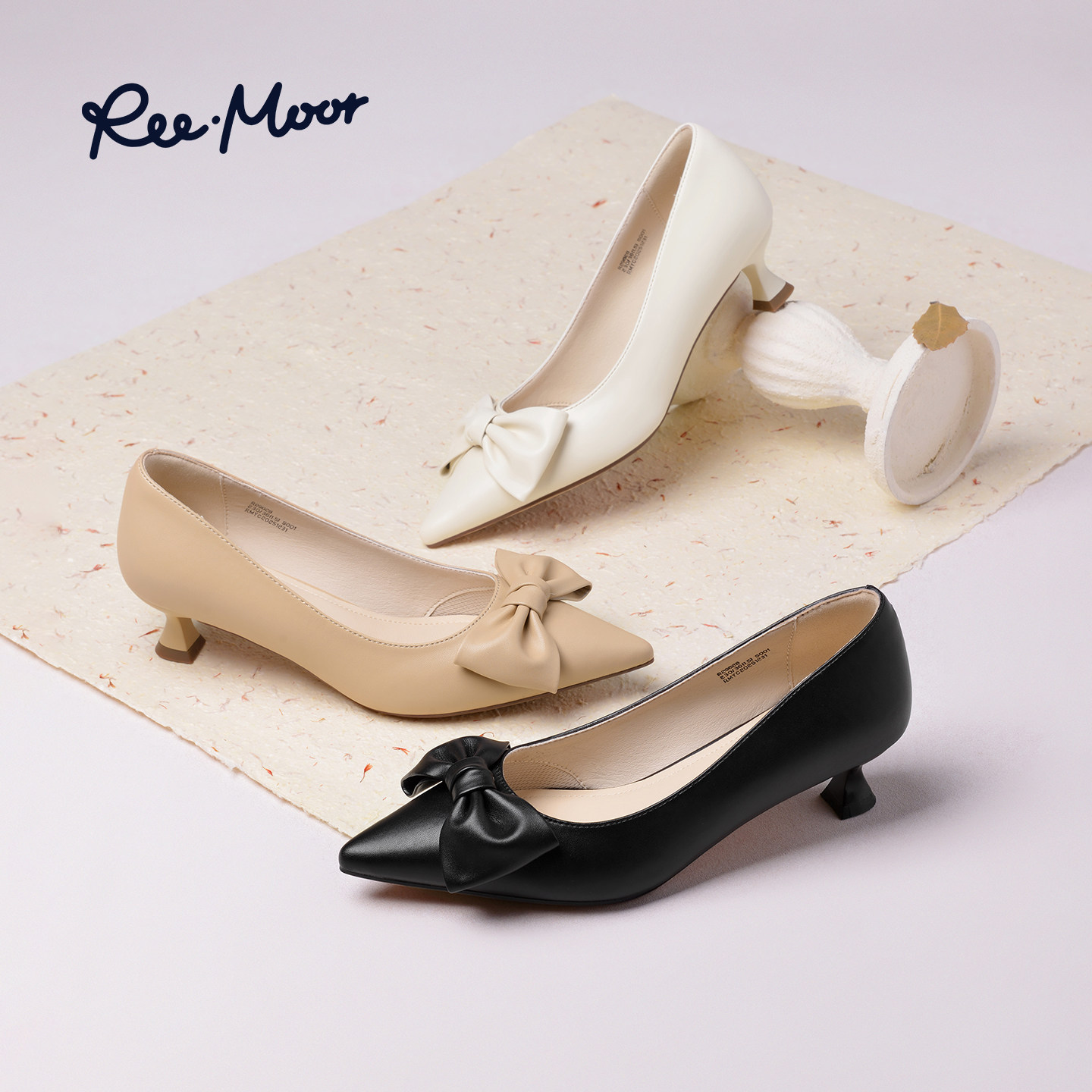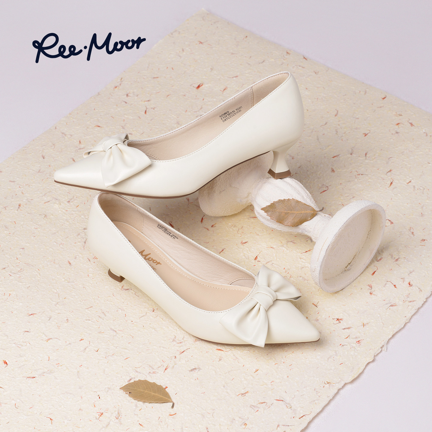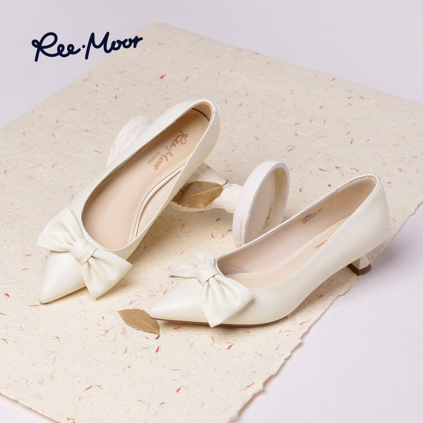 REEMOOR睿慕2026春季新款通勤风尖头细跟浅口单鞋蝴蝶结婚鞋女鞋