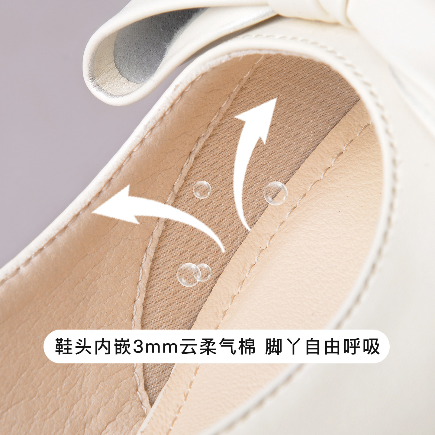 真皮~骄屿法式仙女风高跟鞋女婚鞋玛丽珍鞋珍珠系蝴蝶结粗跟单鞋