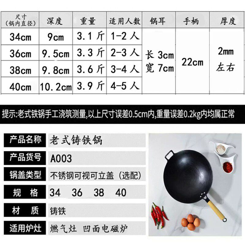 广西陆川生铁锅老式家用已开锅圆底无涂层传统纯正铸铁炒锅炒菜锅