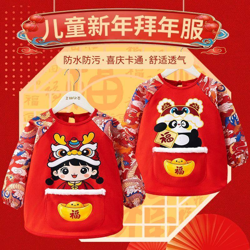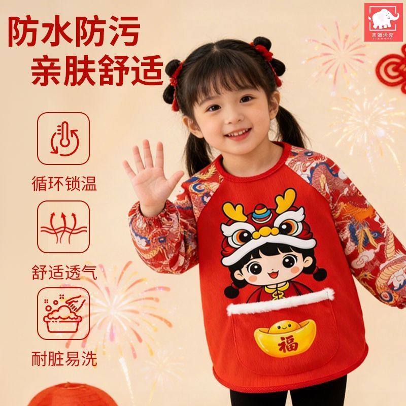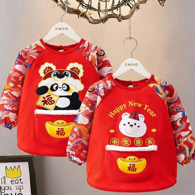中国风儿童宝宝罩衣秋冬外穿洋气拜年服唐装吃饭围兜新年春节红色