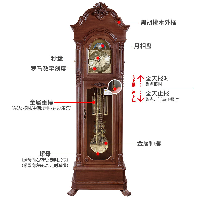 欧式落地钟客厅落地摆件钟美式大座钟复古立式机械落地钟HG5088