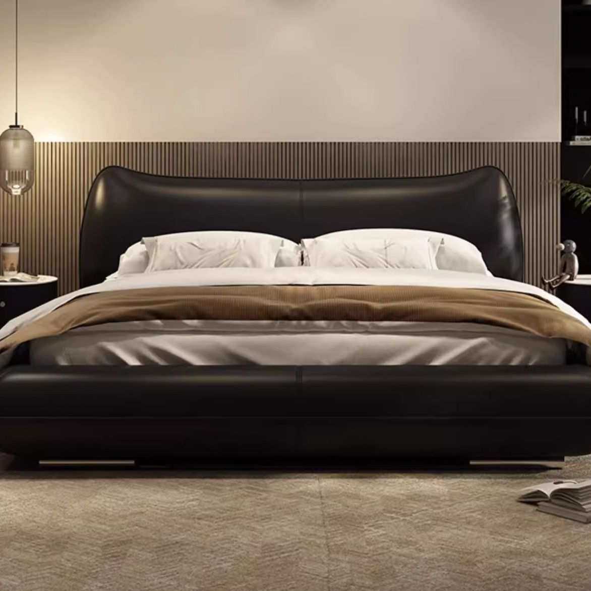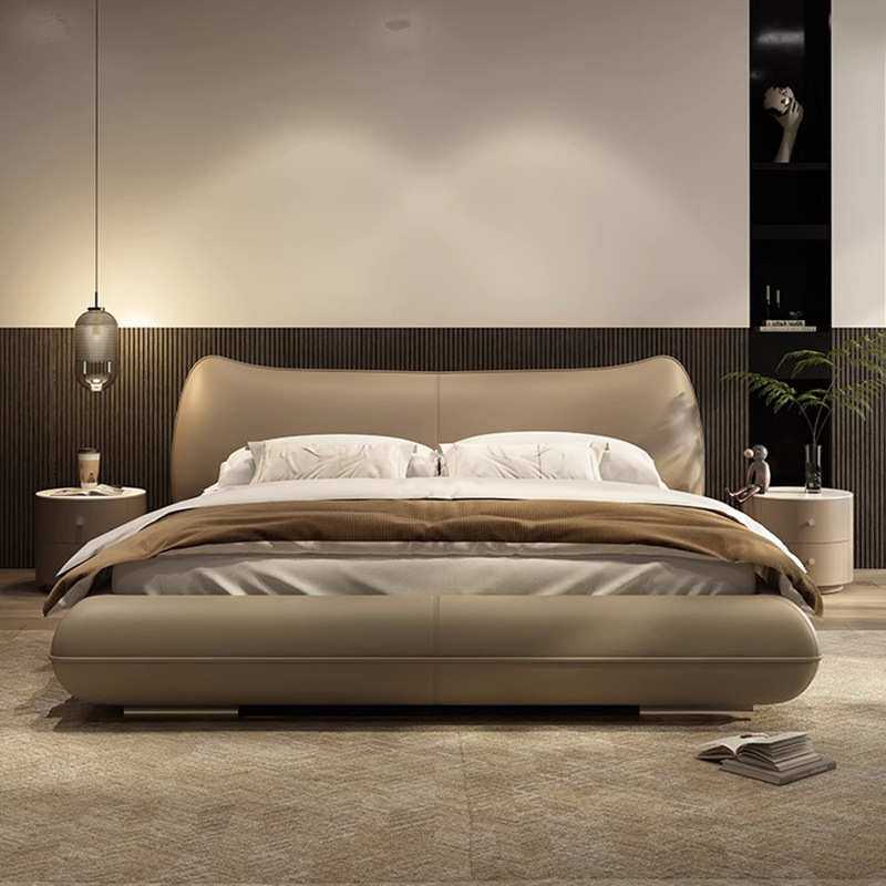 意式极简真皮床高级感主卧双人大床轻奢现代简约皮艺双人床小户型