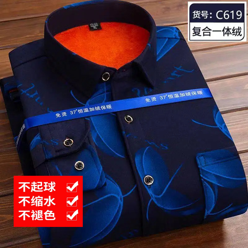 秋冬外套加厚加绒衬衣男士长袖保暖衬衫印花格子衣服男休闲爸爸装