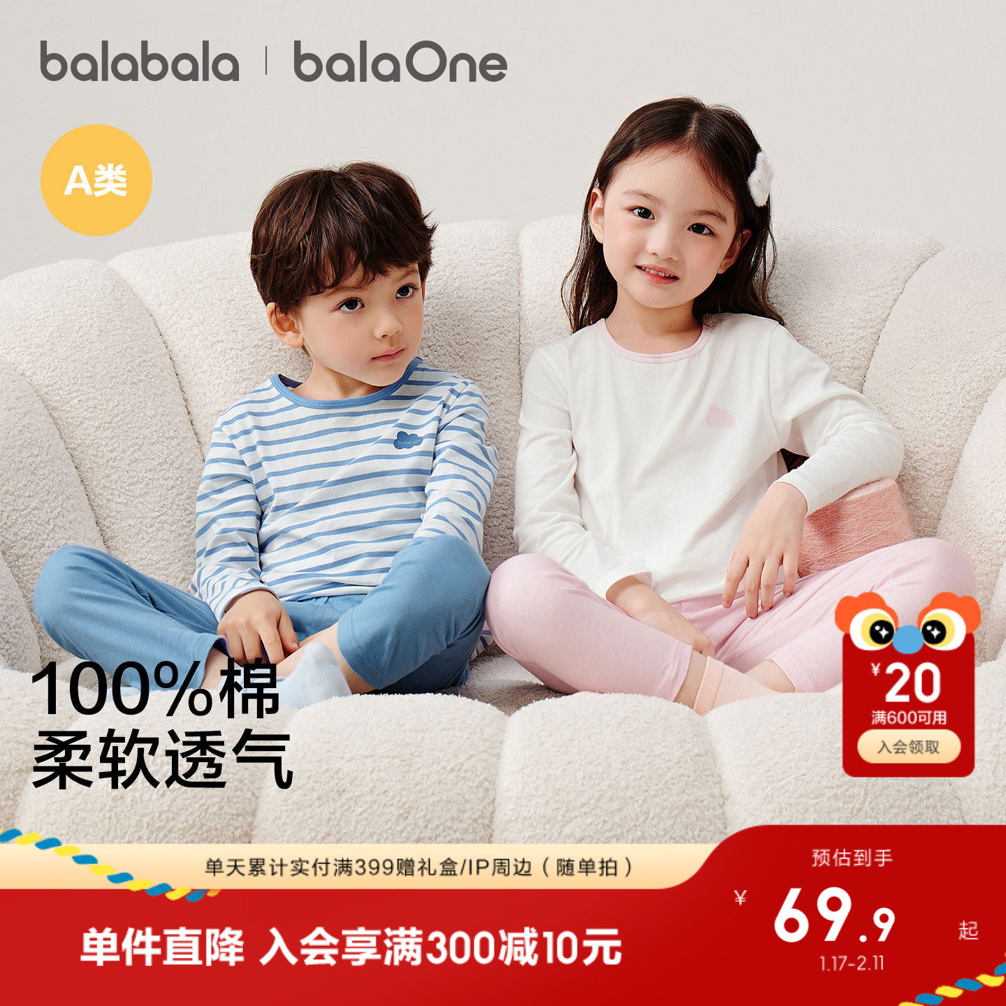 巴拉巴拉儿童内衣套装春秋薄男童秋衣秋裤女童宝宝打底衫睡衣纯棉
