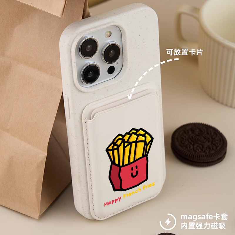 开心薯条magsafe磁吸卡包适用苹果iphone15promax皮革14plus同款真皮卡套13mini手机壳皮质配件门禁卡通卡套