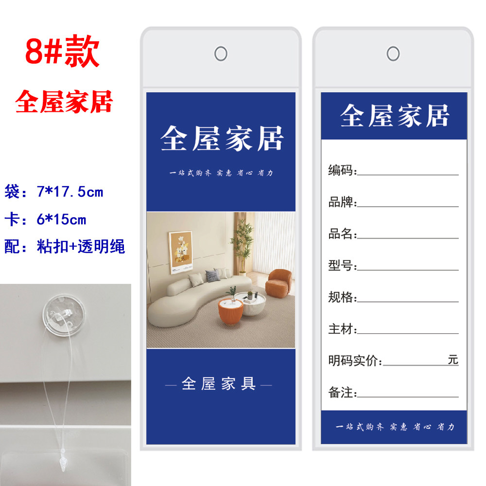 家具价格标签磨砂装袋吊牌卫浴家居桌子椅子软装吊牌带胶无痕粘扣