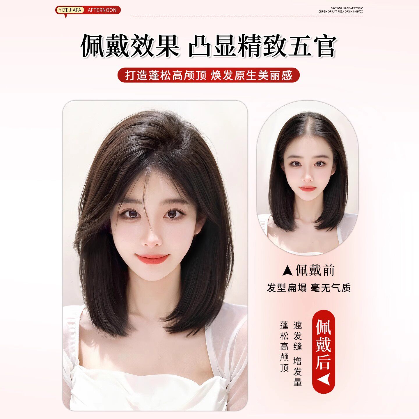发卡刘海假发女片头顶全真发遮白发自然无痕发缝发片魔术贴轻薄