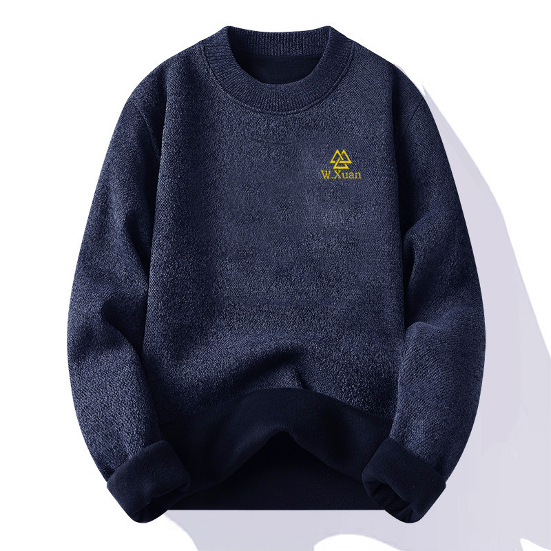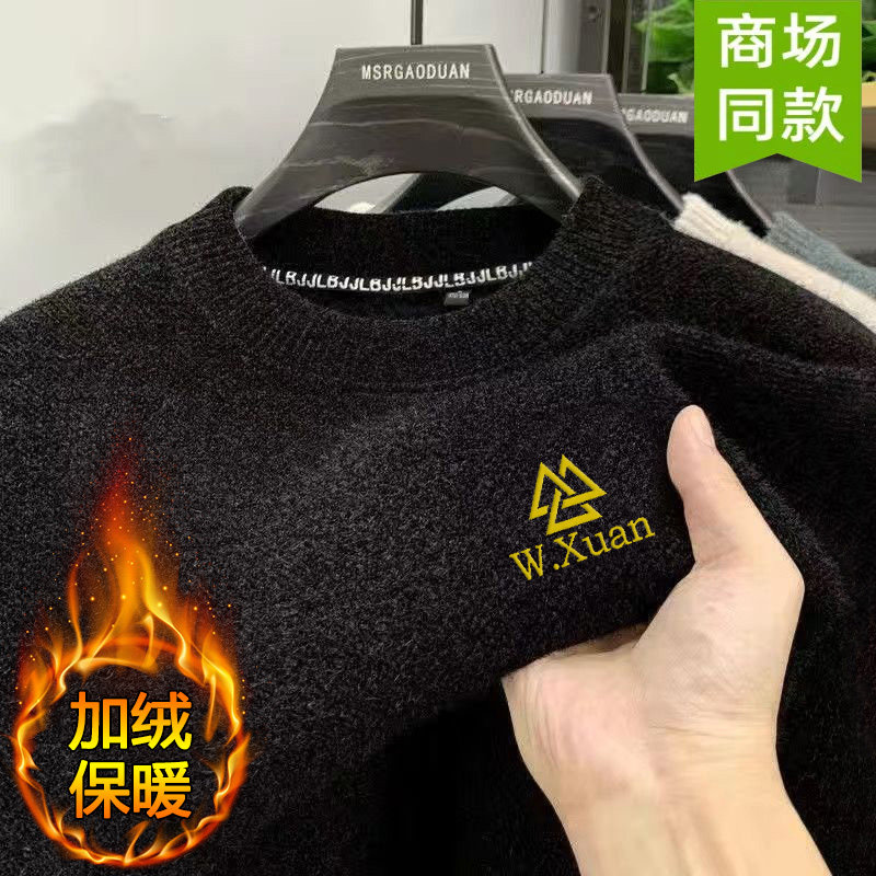 加绒加厚款打底衫男士一体绒雪尼尔毛衣爸爸装冬季保暖衣贴身内搭