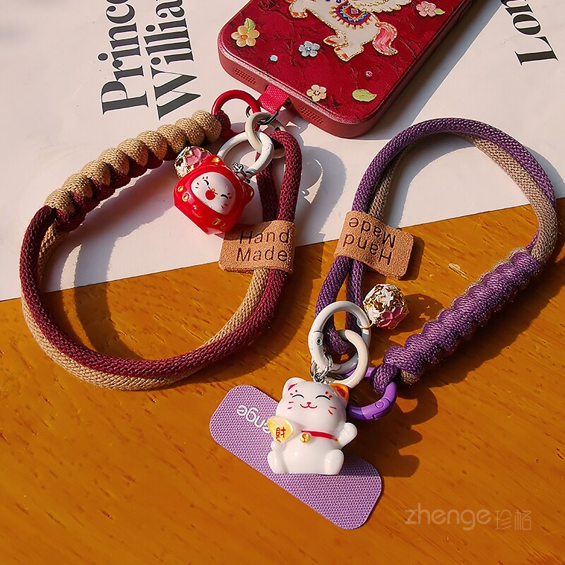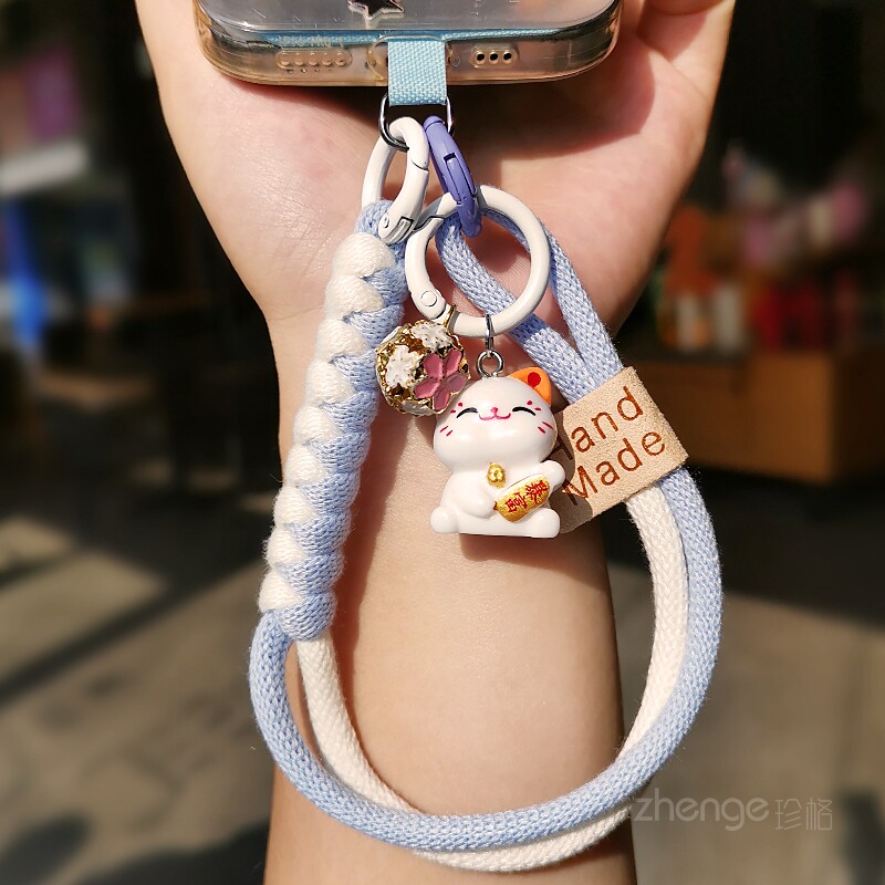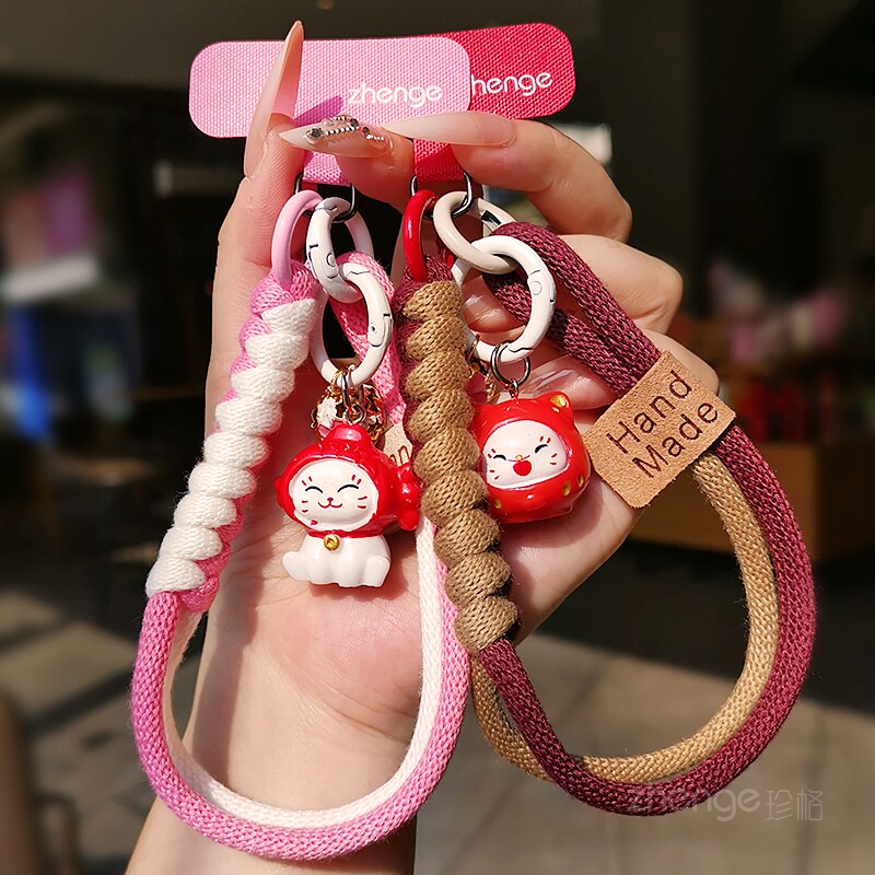 手机挂绳卡通可爱招财猫手腕吊坠饰品编织绳结实耐用挂件时尚新款