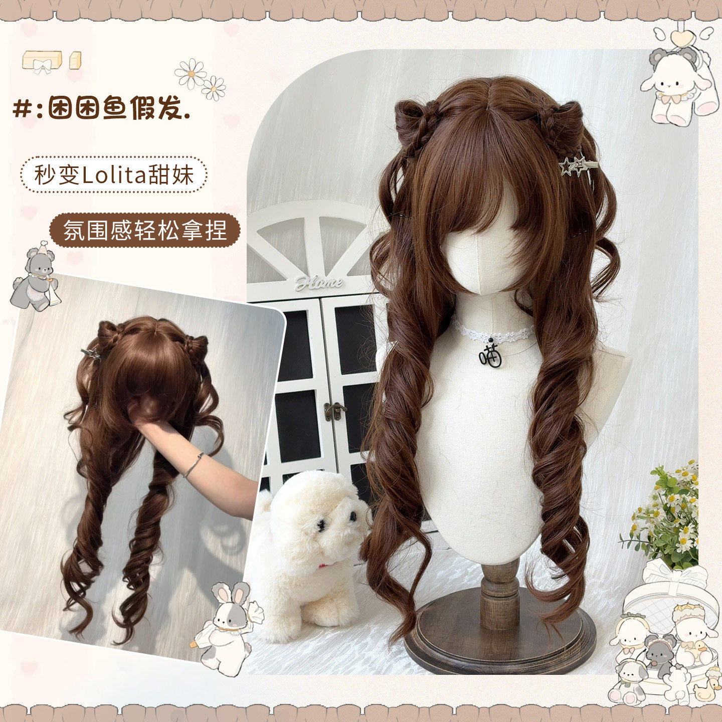 【焦糖泡芙】Lolita长卷发假发女日系甜美巧克力棕仿真人发全头套