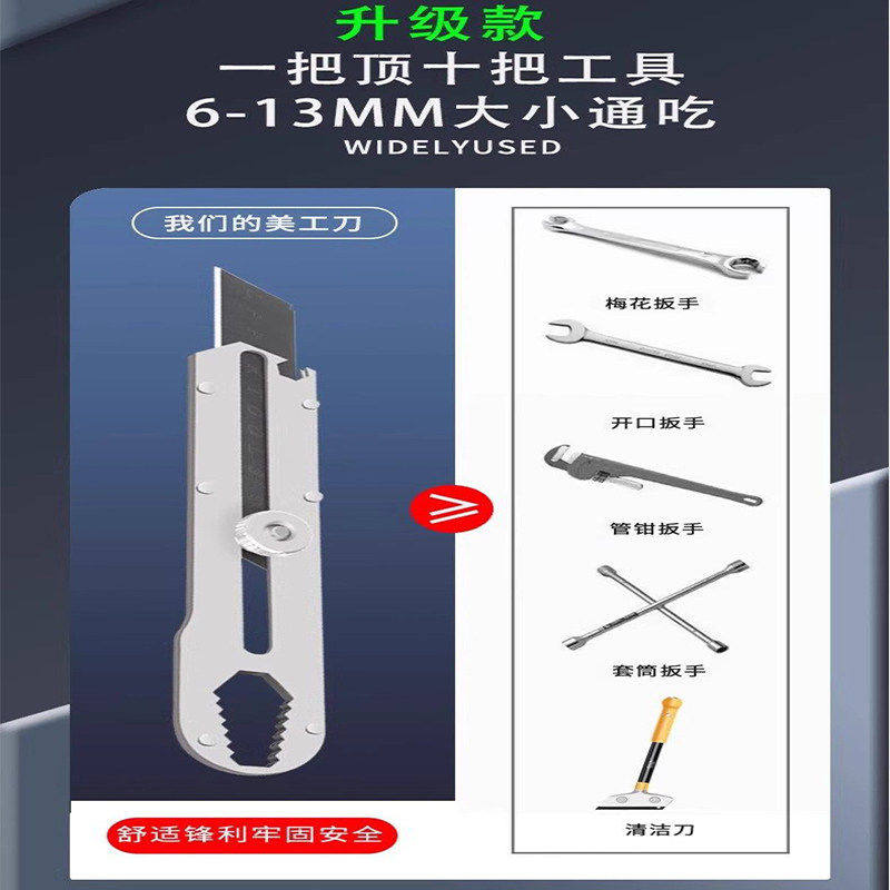 新款多合一扳手刻刀多功能不锈钢美工刀加厚款锋利可当扳手起瓶器