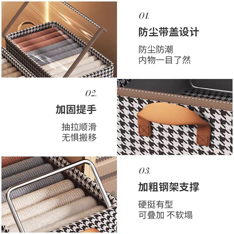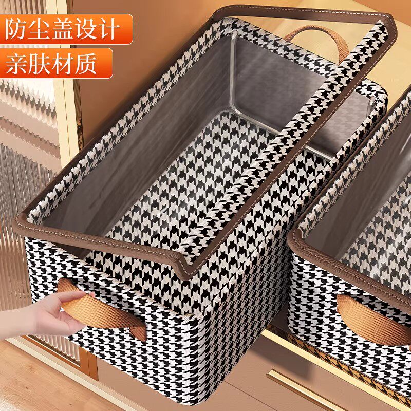 衣服收纳箱千鸟格家用衣柜分层整理收纳神器放衣物布艺折叠收纳筐