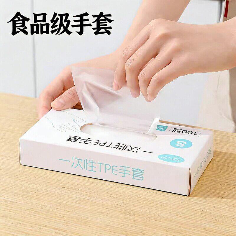 加厚一次性家务手套食品级TPE手套塑料餐饮厨房家用抽取式盒装