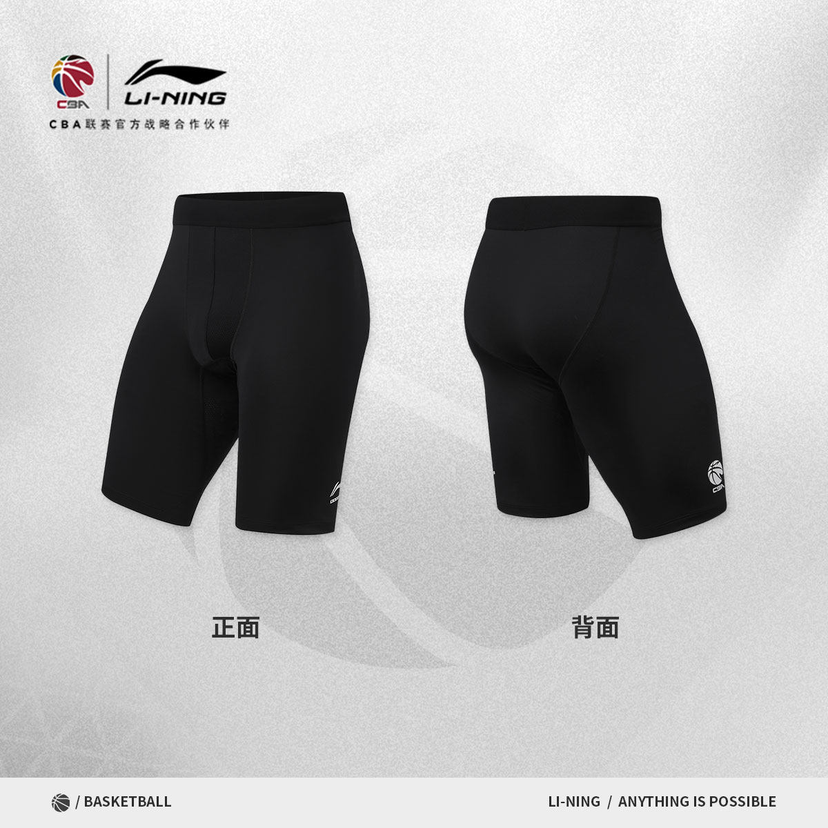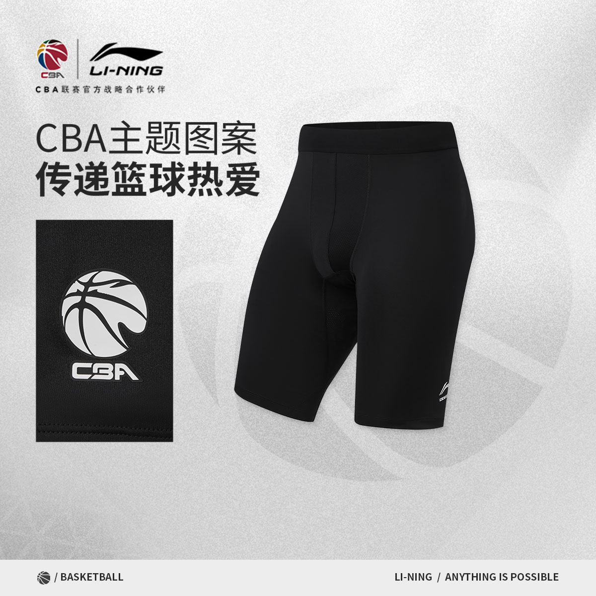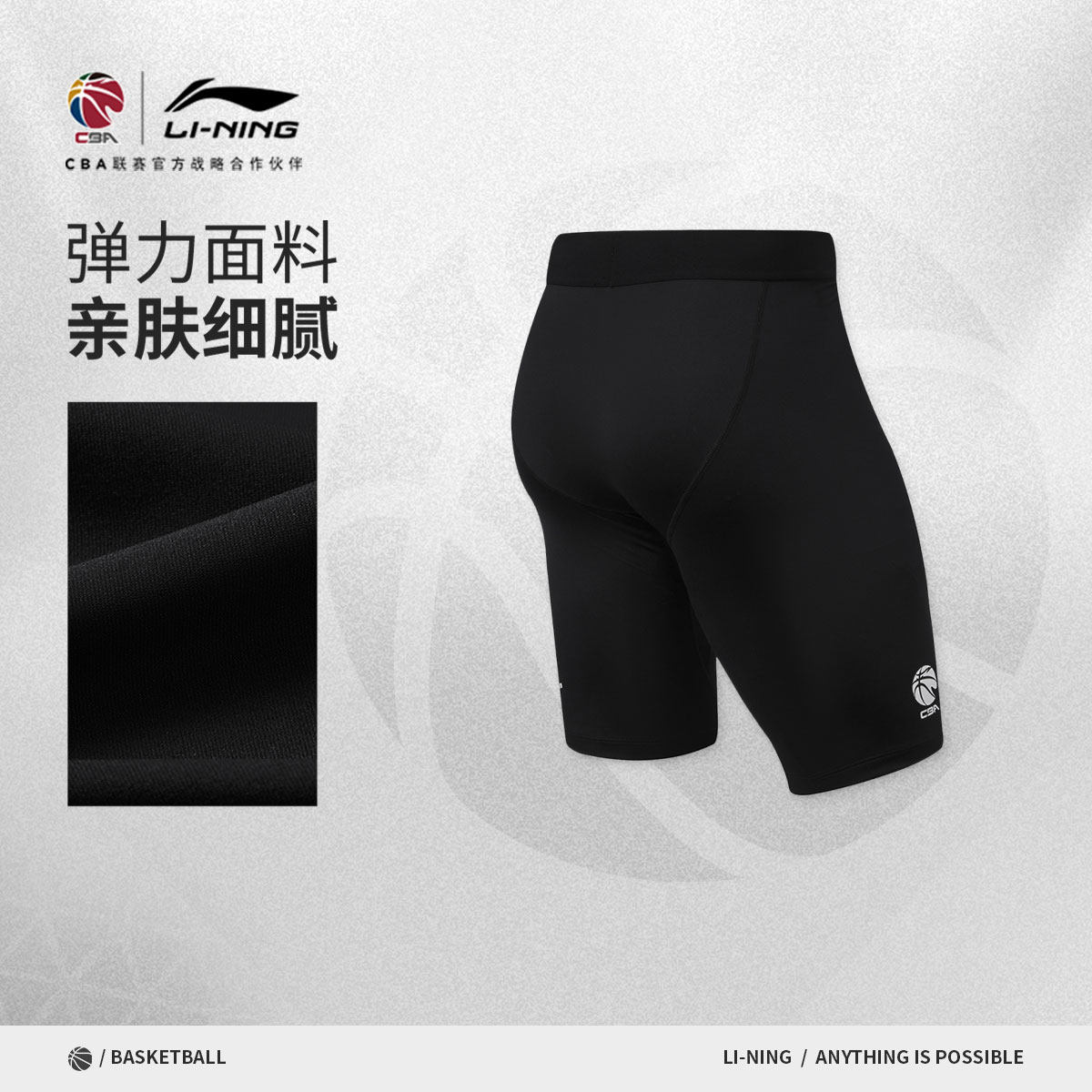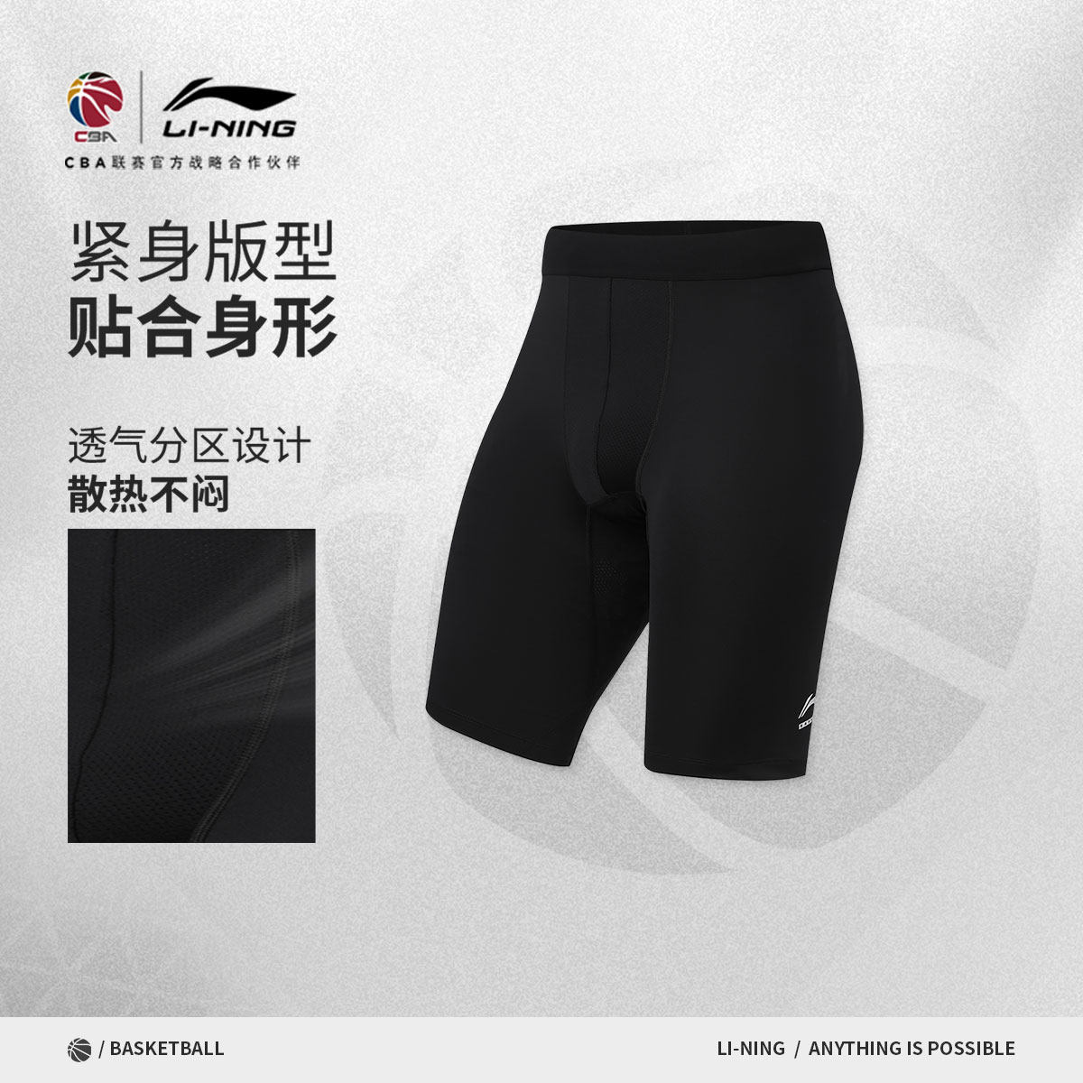 李宁CBA健身裤男士裤子春季弹力紧身针织短裤运动裤