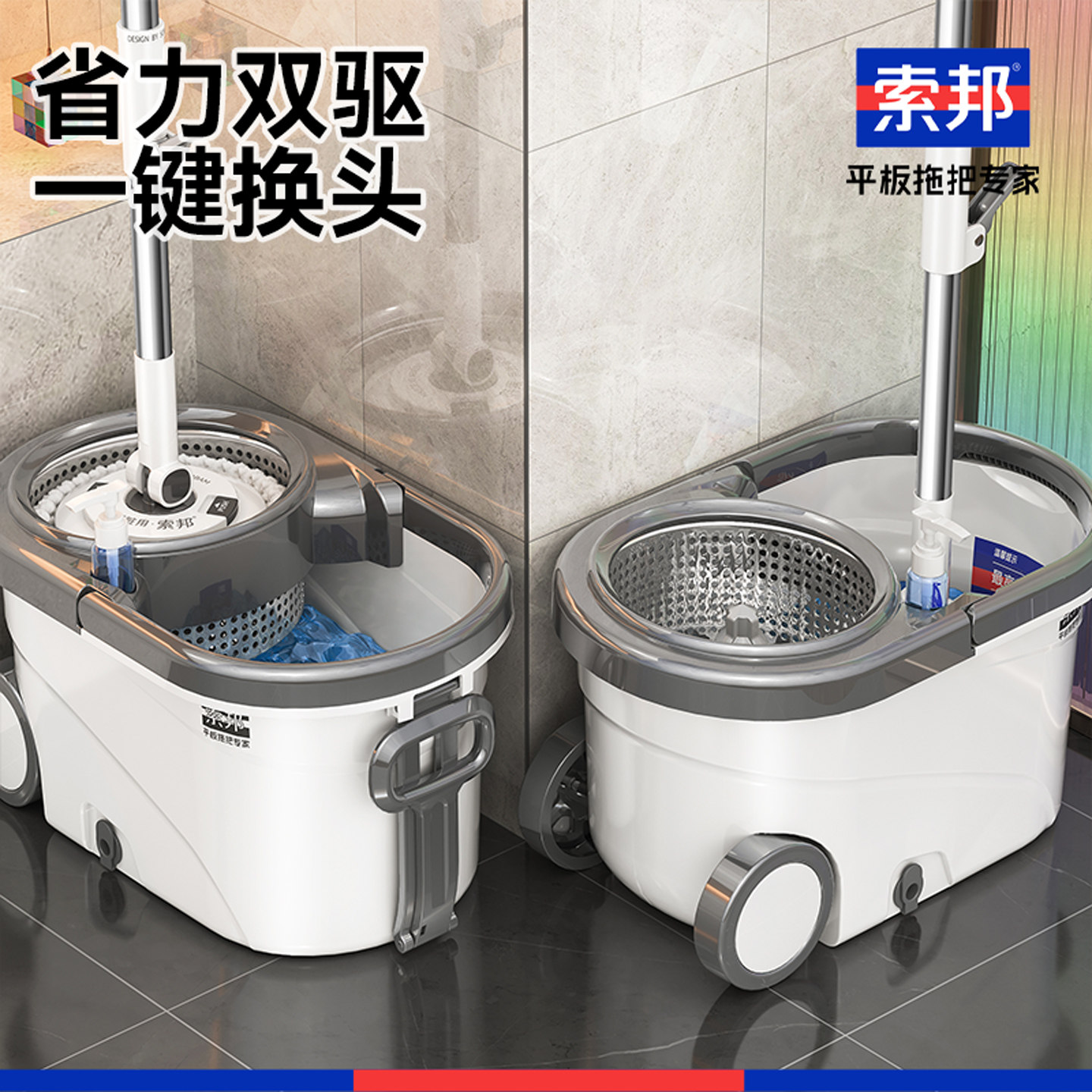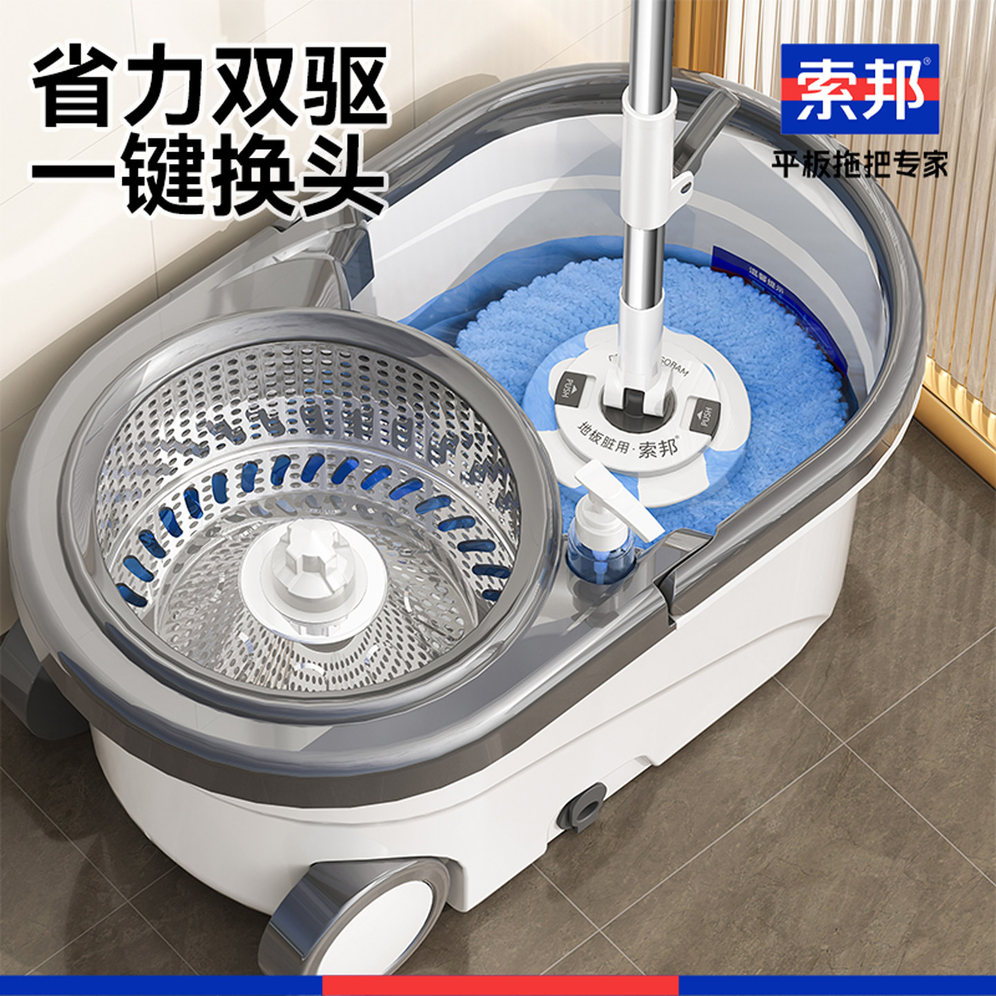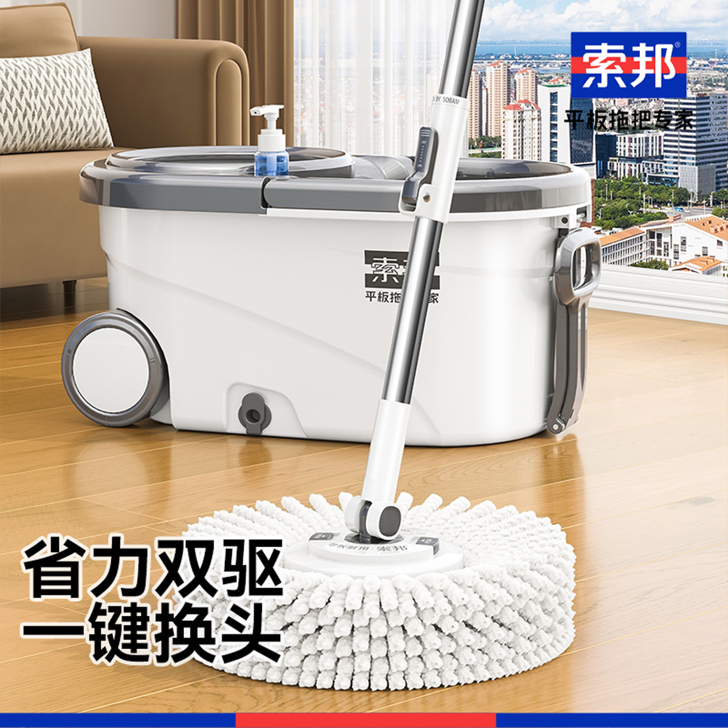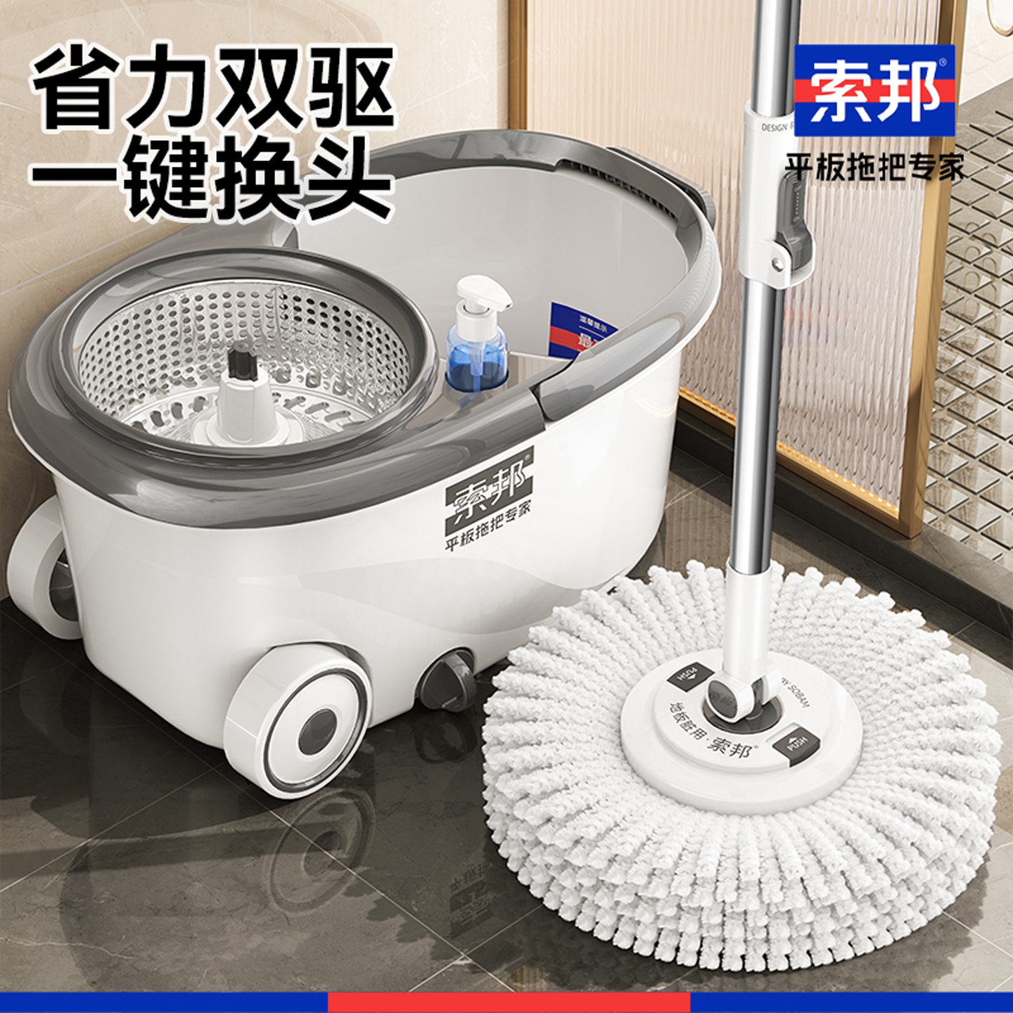 索邦旋转拖把家用脱水桶2025新款免手洗自拧水一拖净懒人神器拖布