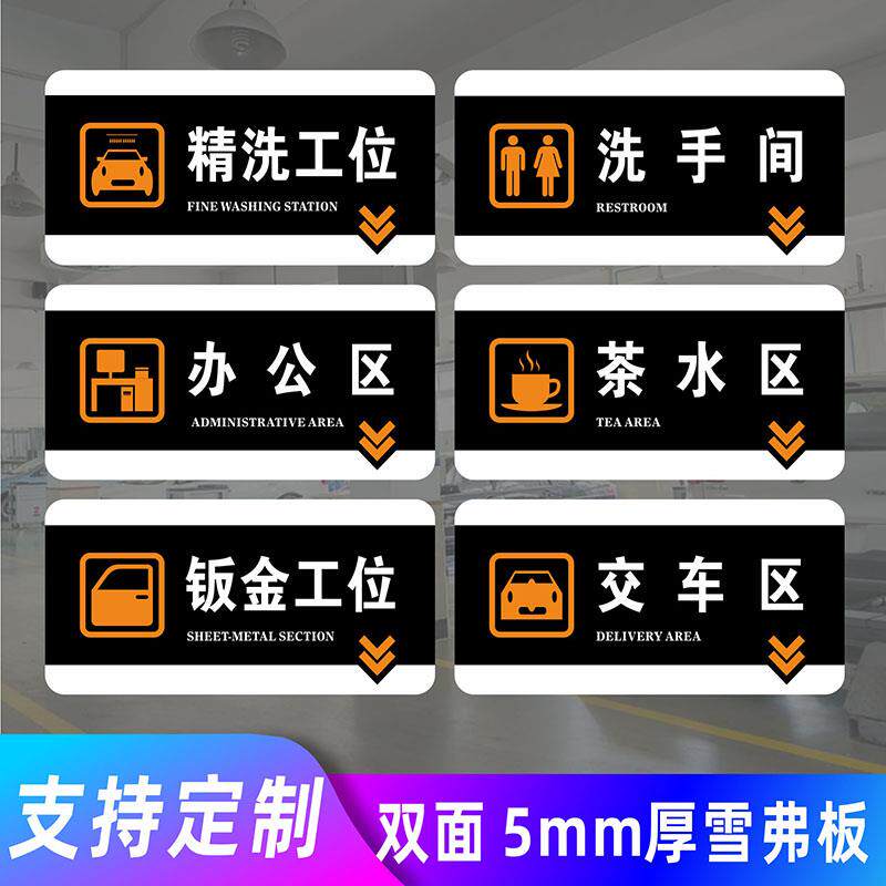 4s店汽车维修厂区域标识牌修理厂指示牌保养钣金轮胎喷漆打磨抛光检测区四轮定位工位挂牌吊牌分区分类提示牌
