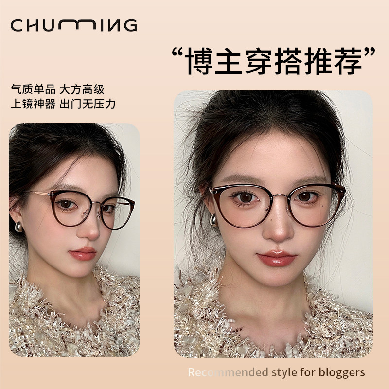 超轻钛架冷茶色猫眼框眼镜近视女可配度数方圆脸显瘦防蓝光眼睛架