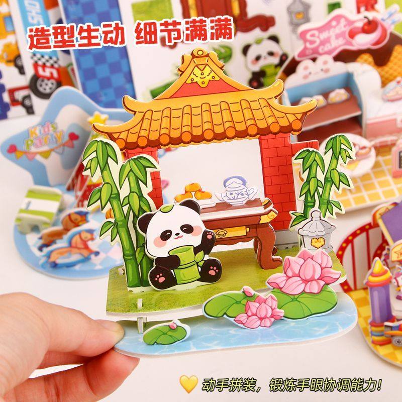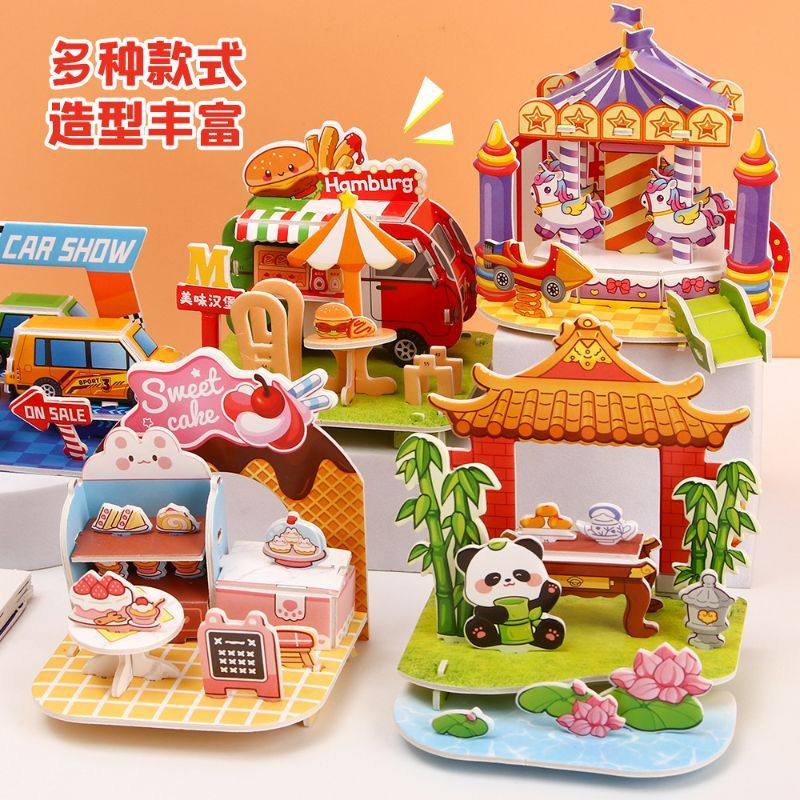 3D立体拼图卡学生DIY手工建筑屋益智拼图儿童3-6岁早教摆地摊玩具