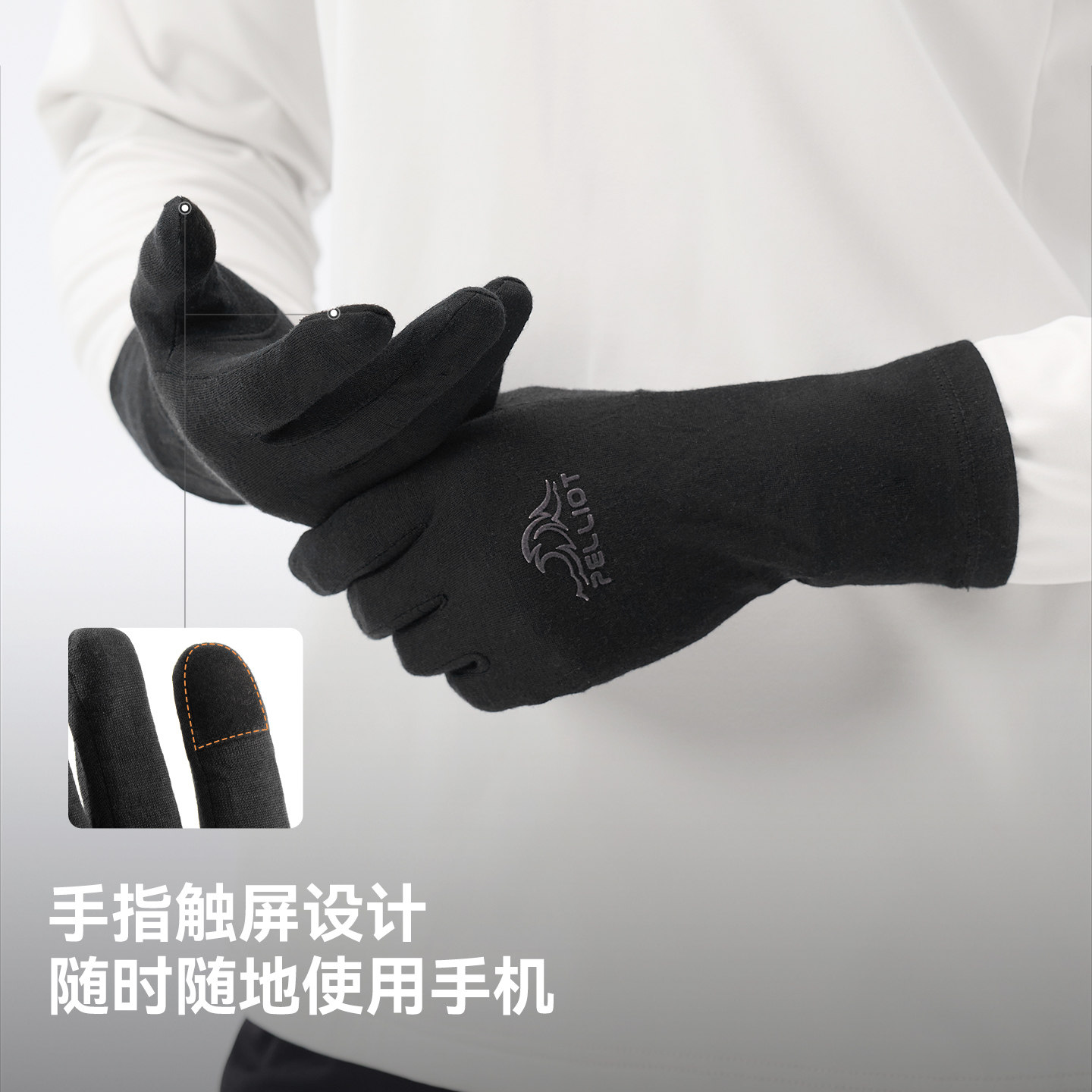伯希和户外手套男美利奴羊毛秋冬登山保暖徒步防风跑步骑行内胆女
