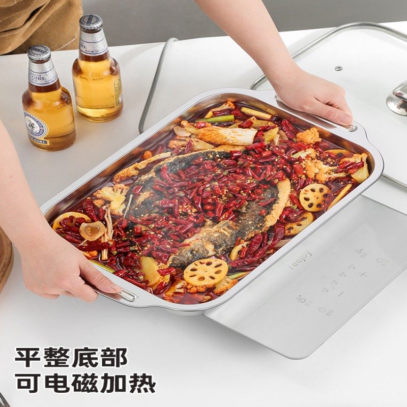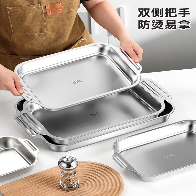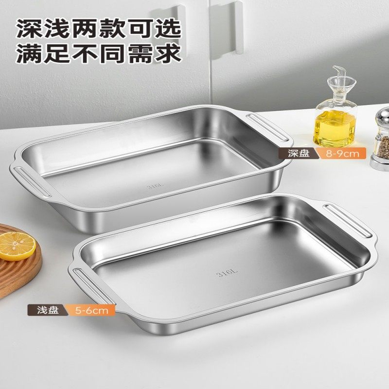 不锈钢烤鱼盘长方形家用410食品级加厚电磁炉烤鱼专用烤盘子烤箱