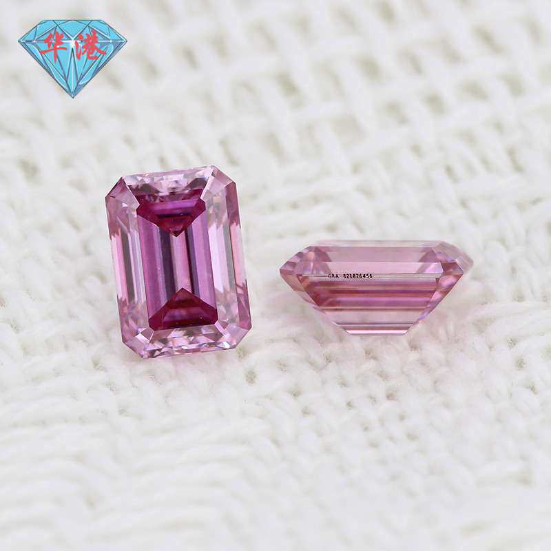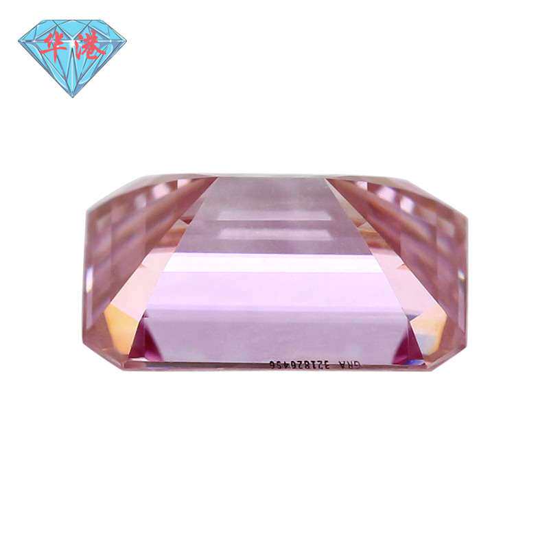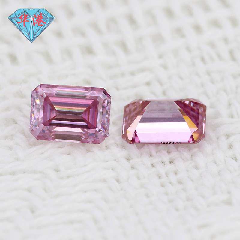 华港宝石 祖母绿切粉莫桑石裸钻 长方倒角车平人造粉红色戒面主石