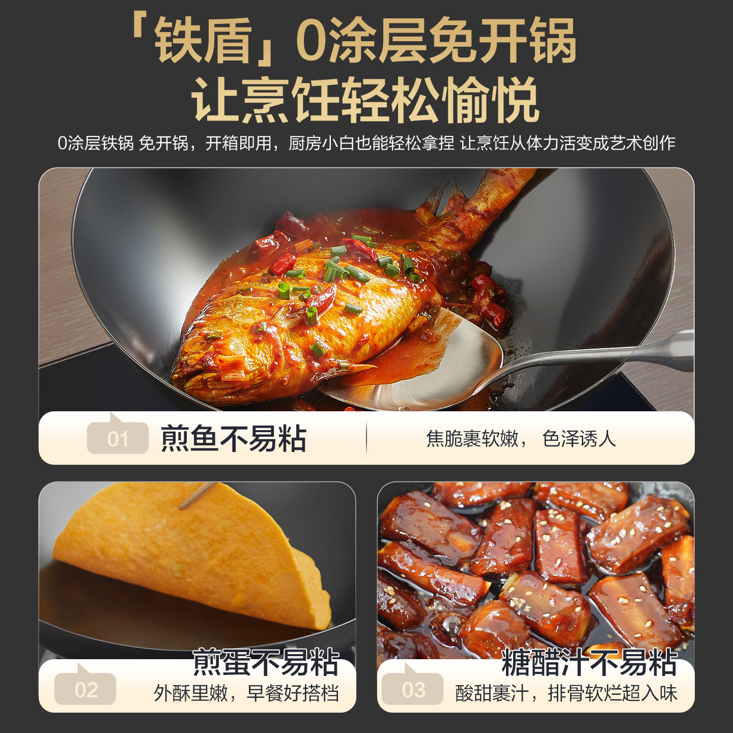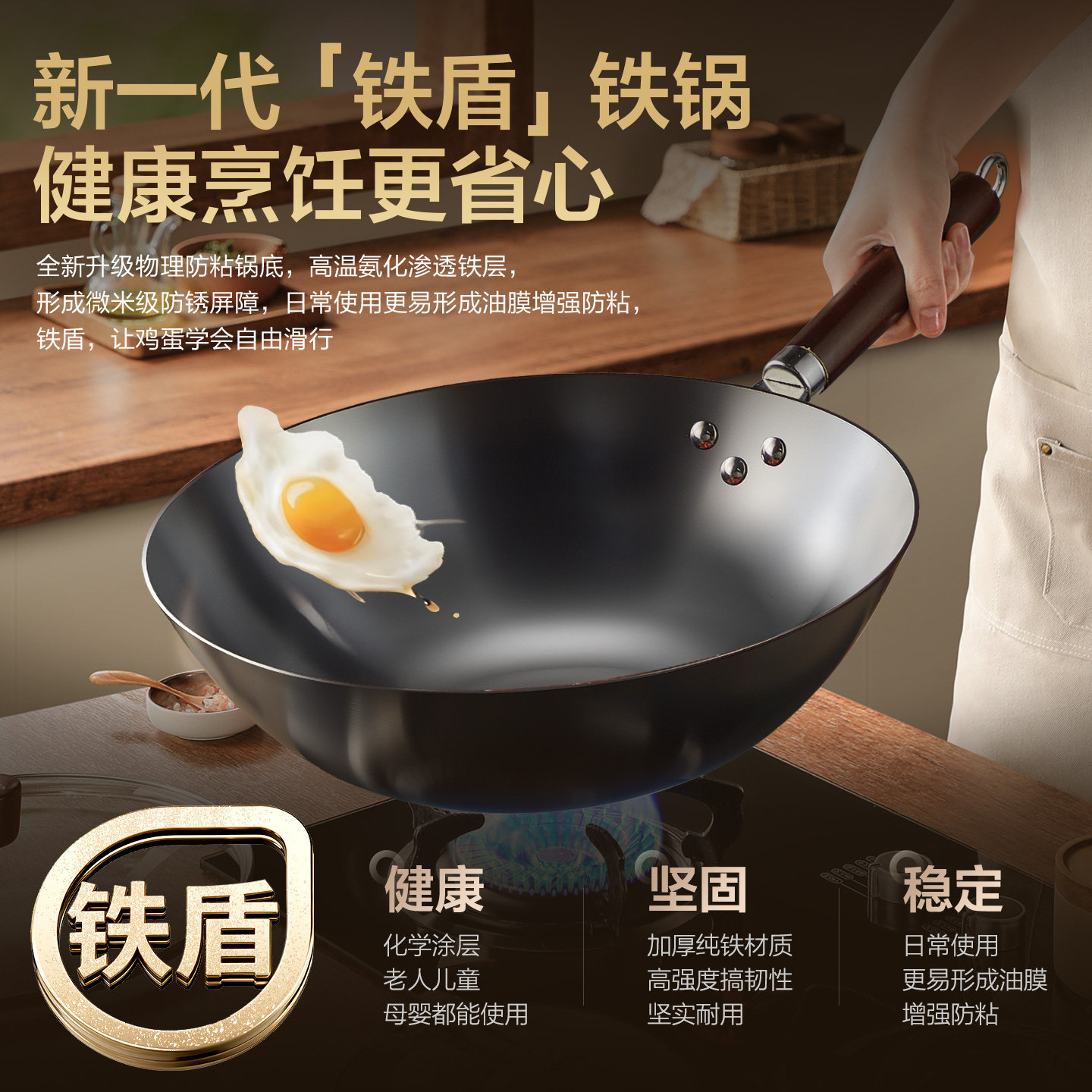 九阳铁锅无涂层炒锅家用炒菜锅不易粘锅电磁炉专用燃气灶旗舰店炊