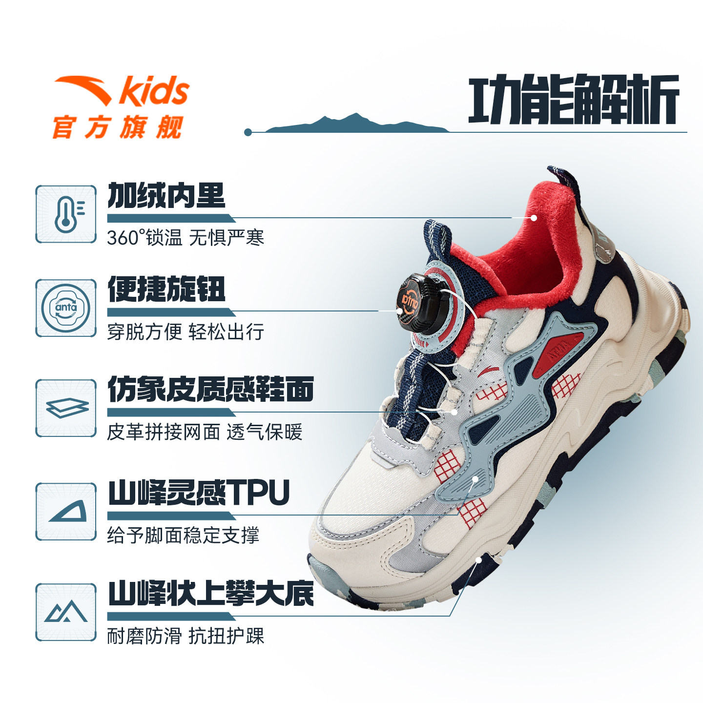 安踏儿童男小童棉鞋2025秋冬新款运动鞋防滑户外鞋二棉旋钮童鞋