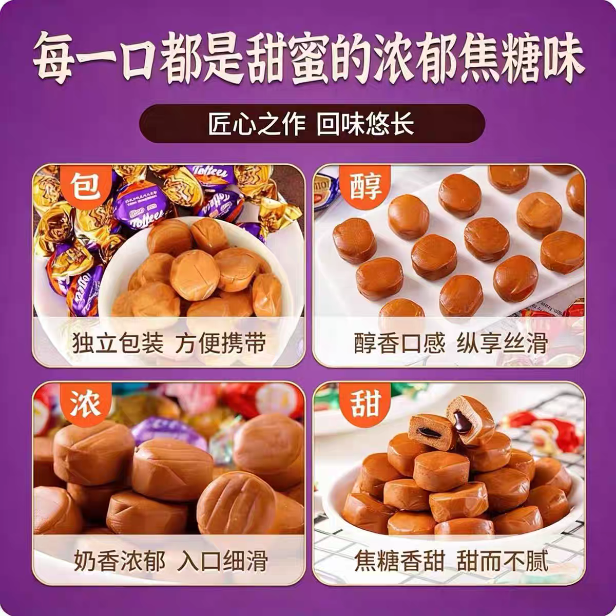 太妃糖巧克力爆浆夹心整箱喜糖散装批发糖果网红零食软糖年货新年