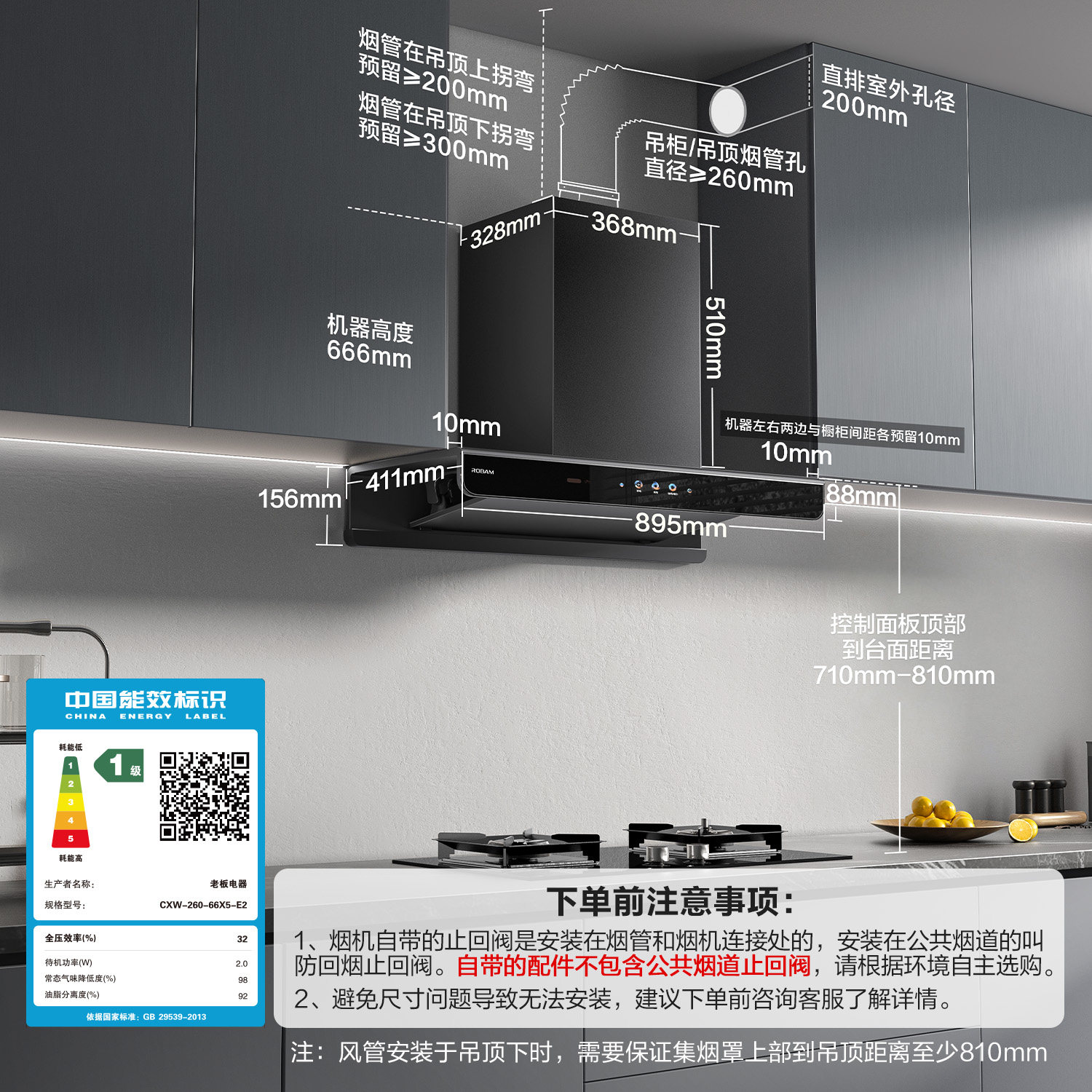 老板双子星E2抽吸油烟机家用厨房大吸力燃气灶具套装官方旗舰店