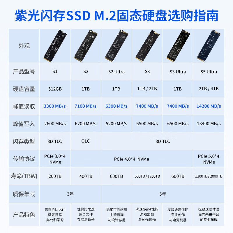 UNIS紫光闪存S3 M2固态硬盘1T 2T 4T 512G电脑装机Pcie4固态SSD