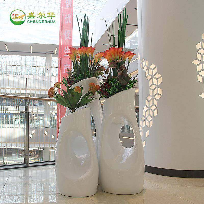 异形玻璃钢落地花盆户外花缸花器园艺花柱商场美陈花瓶雕塑摆件