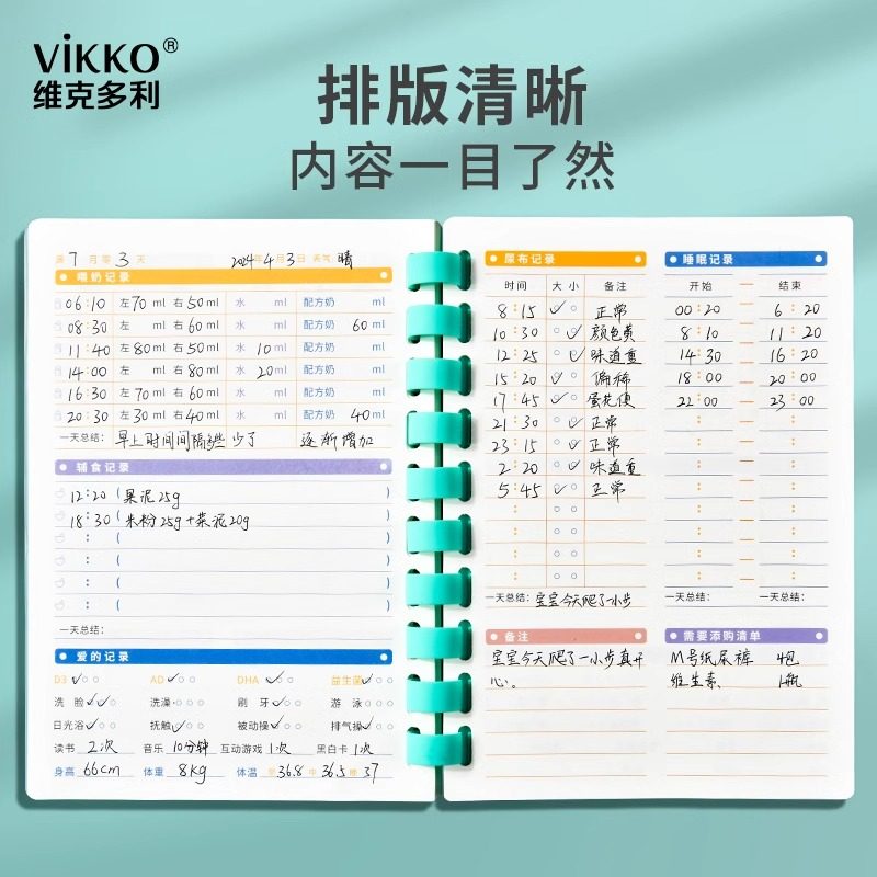 维克多利辅食本喂奶记录本A4A5宝宝婴儿吃喂奶粉母乳活页软线圈