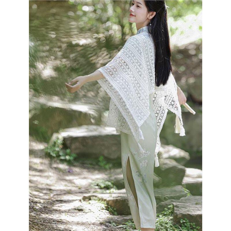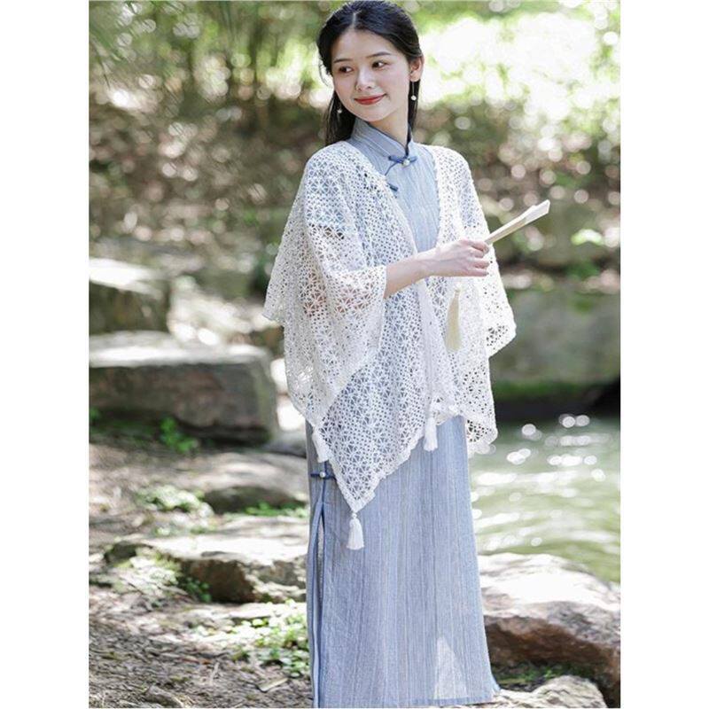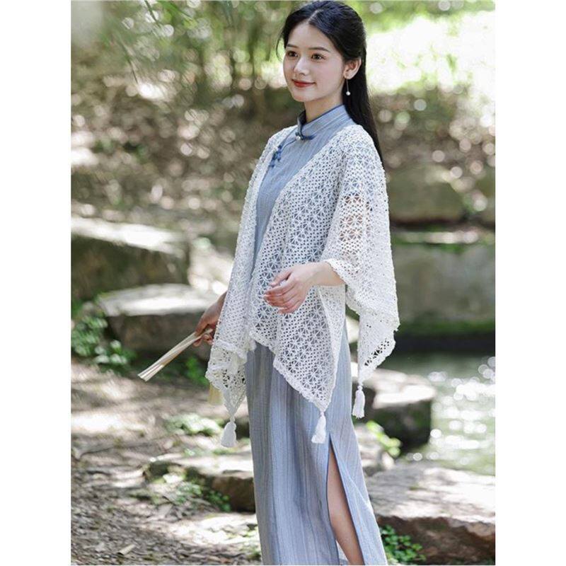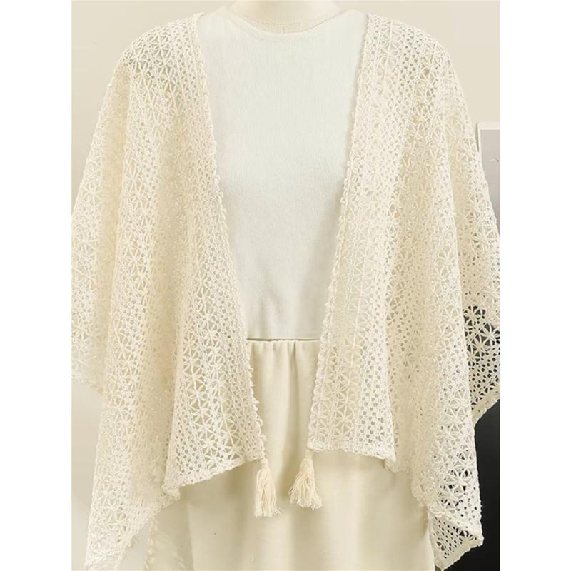 复古民族度假风针织流苏开衫女薄款春秋小披肩配裙子外搭蕾丝罩衫