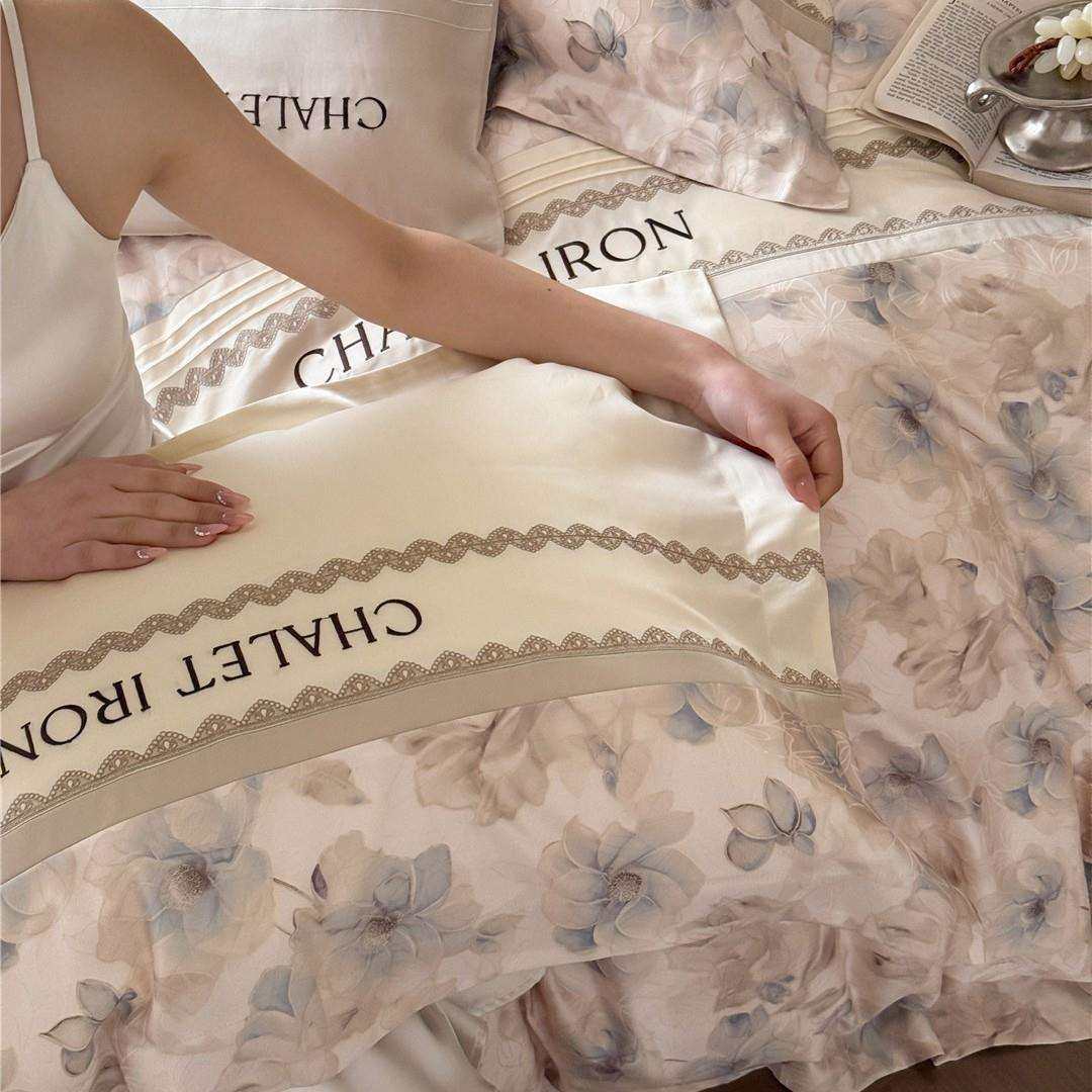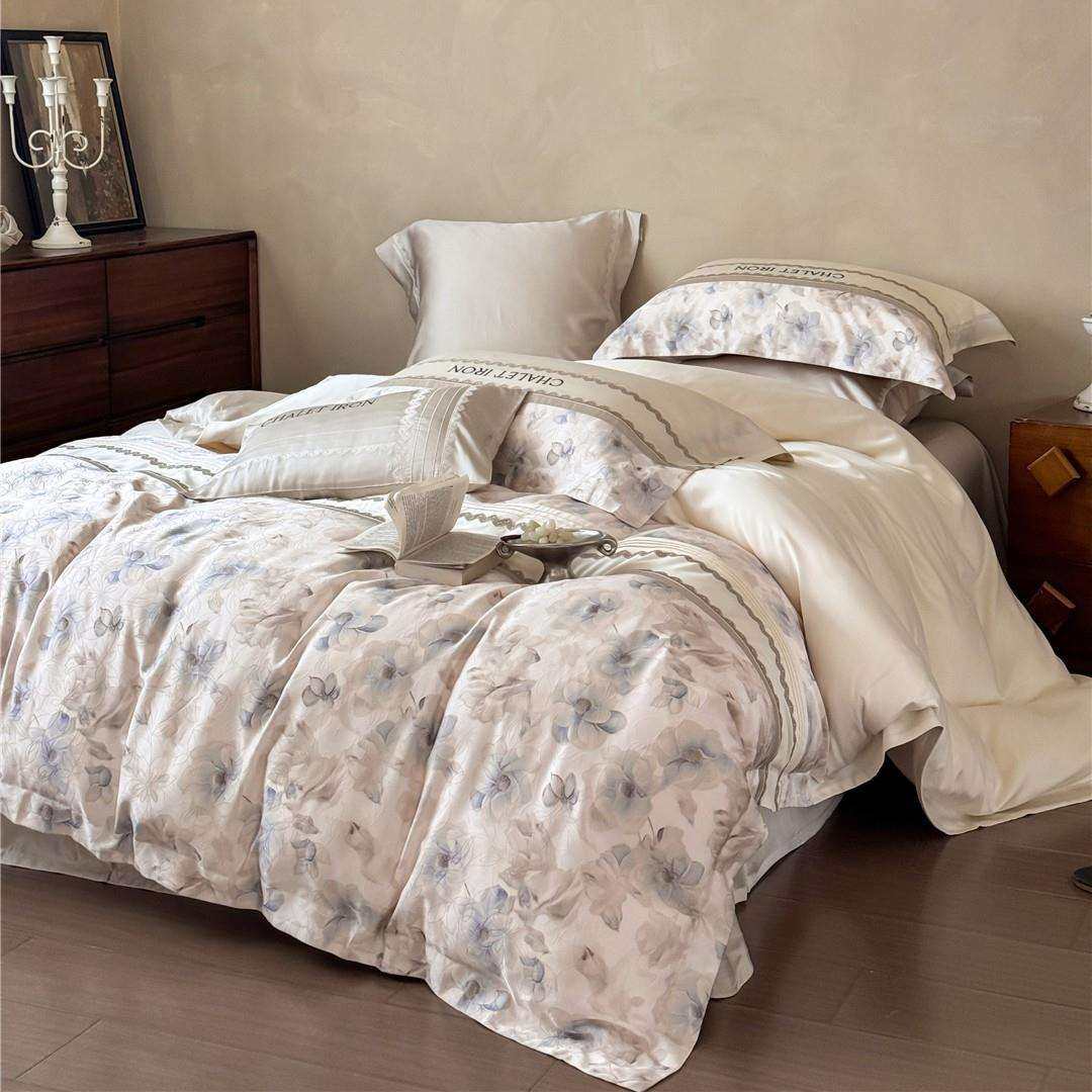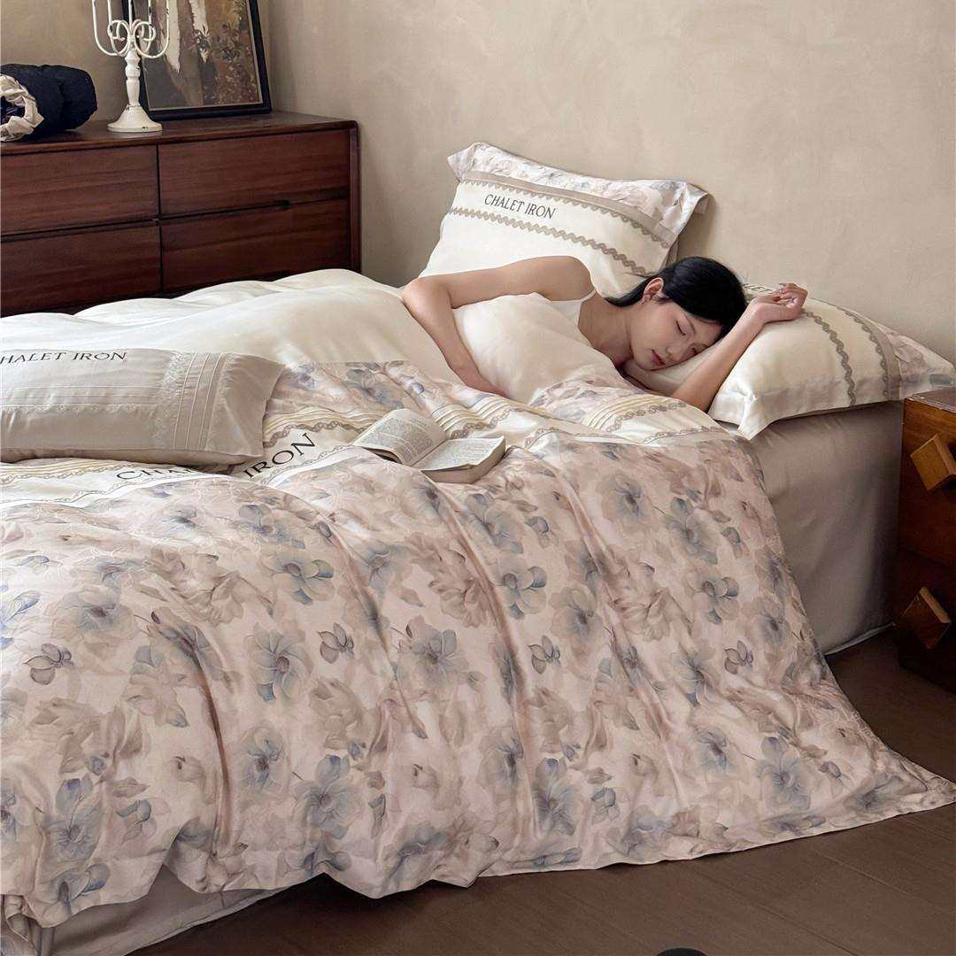 法式复古风刺绣拼接丝滑凉感透气床品夏季兰精莱赛尔天丝四件套