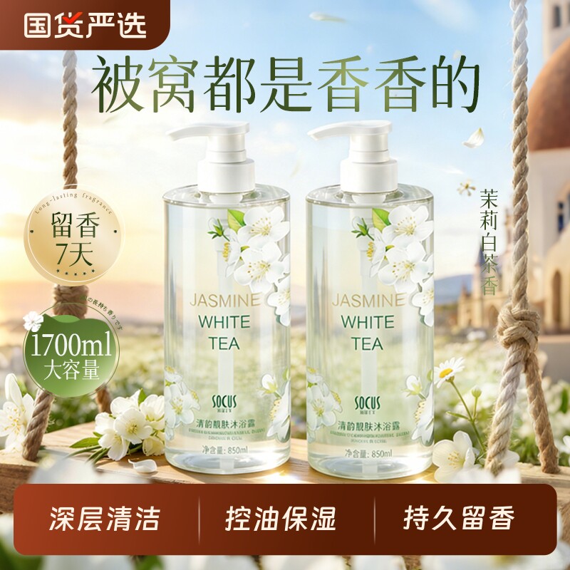 茉莉白茶沐浴露持久留香72小时女男士官方除螨洗澡液乳保湿滋养