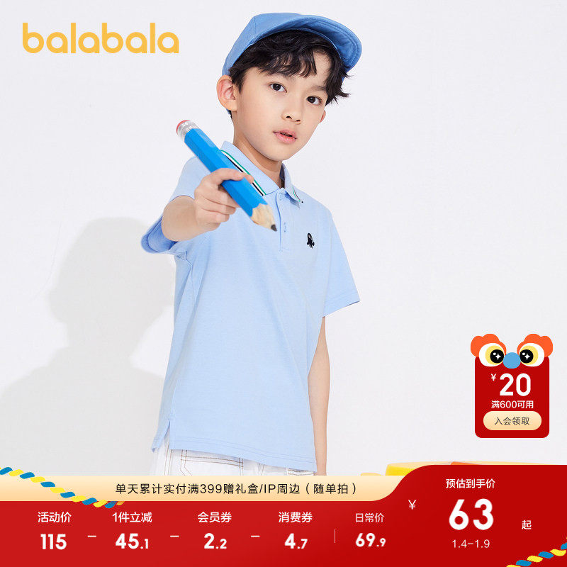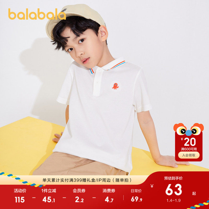 巴拉巴拉童装男童短袖t恤儿童polo衫2025夏装中大童凉感条纹上衣
